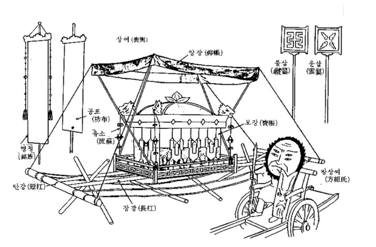 상여(喪輿) 앙장(仰帳)을 상운(祥雲)이라 한다 만사(輓詞)에 쓰길 승피상운(昇被上運) 지우제향(之于帝向) 이라한다 조객들이 말하기를 저 피(彼)자를 써야지 입을 피(被)자를 사용하는 것은 잘못되었다고 왈가왈부 하는 걸 들었다 만사가 담론 거릴 제공하는 것 저구름을 타고 상제님께로 향한다고 해야지 어째 구름을 입는가 함에 한 조객이 무식이 탄로나는 말을 좀 그만하라 하면서 만사를 쓴 조객이 당신만 못해선 저 글자를 썻겠는가 영혼이 저 구름을 옷처럼 입고선 상제님 한테로 향하라는 거지 알몸으로 상제님을 알현 하는가 사모관대를 해야지 성상(聖上)앞에 나아가는 건데 하늘 세계의 사모관대(紗帽冠帶)는 구름이라 하는 취지겠지.. 지금 돌아가셧을 건데 가게명호 학생사 주인이 그렇게 학식이 많아선 그런 말씀을 하시걸 내가 얼진 들은 것 같다 승피상운이 잘못된 글이라고 ...