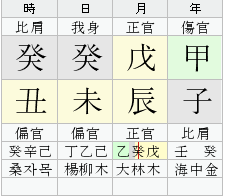 갑자년 무진월 계미일 계축시(1시40분) 생으로 알고 있었습니다. 며칠전 연휴에 식사하던중 우연히 제가 태어난 때 얘기가 나와 어머니께 여쭈어 보니 1시 40분인지 3시 40분인지 기억이 잘 안나신다고 하는군요. ;; 3시 40분 생일 경우 사주는 다음과 같습니다.