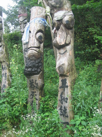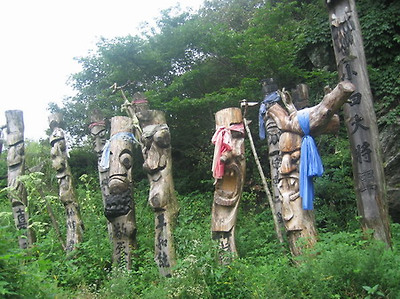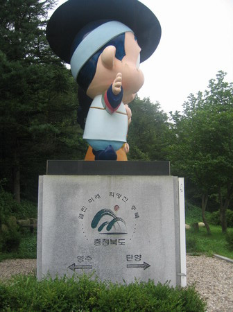 죽령을 넘으면 충북 단양이 나옵니다. 그 경계선이 죽령의 정상이지요. 정상에서 경상도 쪽 보는 것보다는 충청도 쪽 보는 방향이 그래도 전망이 좋더군요. 경상도 쪽 경계지역에는 장승이 한 무리 서 있습니다. 가까이 가서 보니 장관입니다. 경상도 쪽에는 허름한 주막이 하나 있고 충청도 쪽에는 근래 지었음직한 휴게소가 번듯하게 있고 사람들도 제법 많습니다.