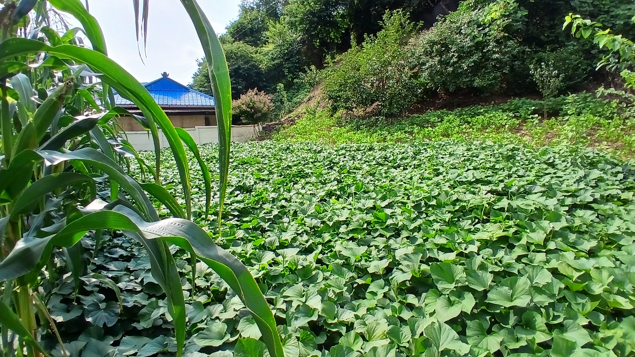 옥수수. 고구마. 땅콩. 들께.상치. 등등