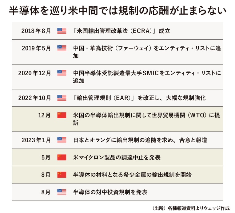 1990년대에 일본의 반도체 산업이 미국에 의한〝찌그러짐〟을 당하는 가운데, 제조 장치나 소재가 버티어 기술을 계속 연마한 것이, 최근에 개화했다. 반도체 본체에서도 경제산업성의 주선으로 라피다스가 첨단 반도체에 재도전한다. 이 라피다스에는 IBM 등 미 기업이 협력 자세를 보인다.