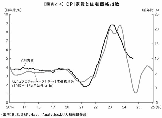 CPI家賃の伸び率は、ペースは緩やかになるものの減速傾向が続くとみられる。ただし、住宅ローン金利が市場の利下げ期待を背景に低下していることで、軟調な住宅販売が下げ止まり、回復へと転じる可能性がある。