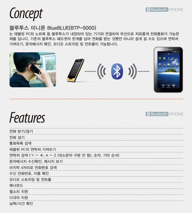 갤럭시탭을 이용하면서 편하게 전화통화를 할 수 있도록 도와주는 블루블루 BTP-5000
