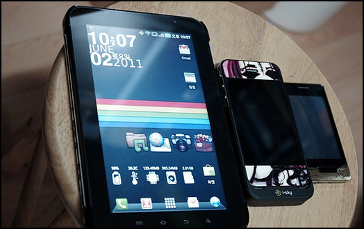 갤럭시탭으로 통화하려면 큼직한 갤럭시탭을 얼굴에 가져다 대고 스피커폰을 이용하거나