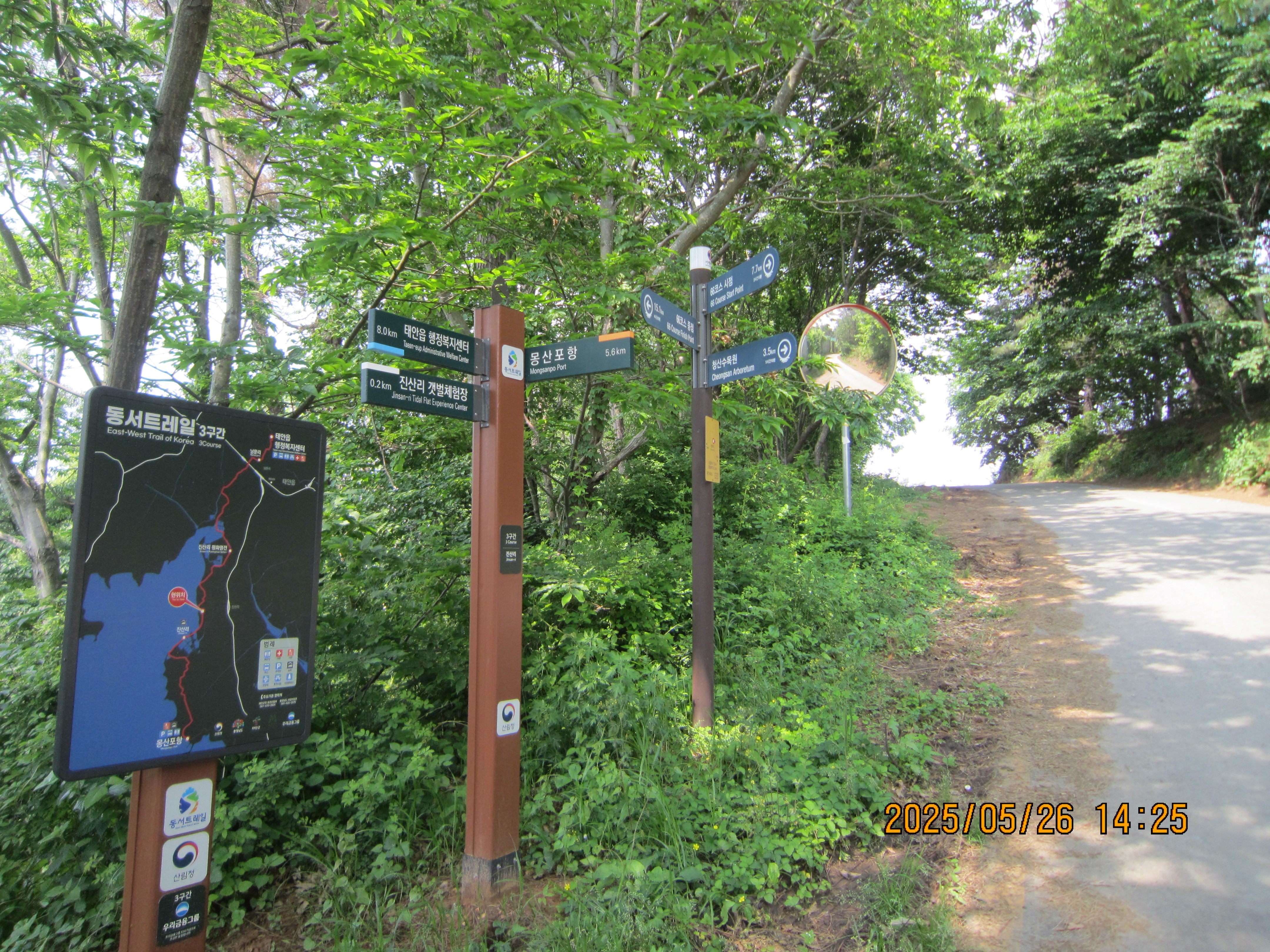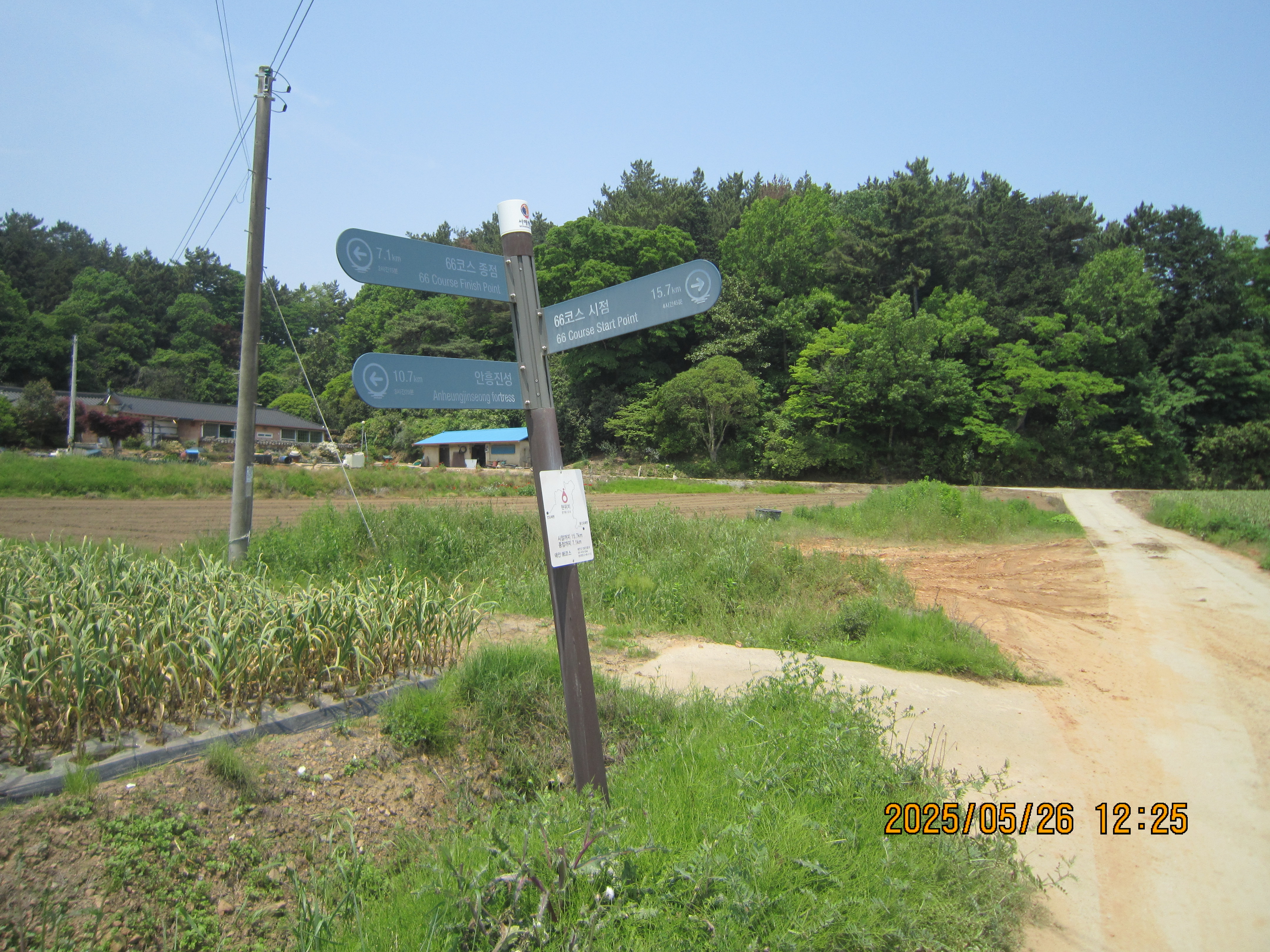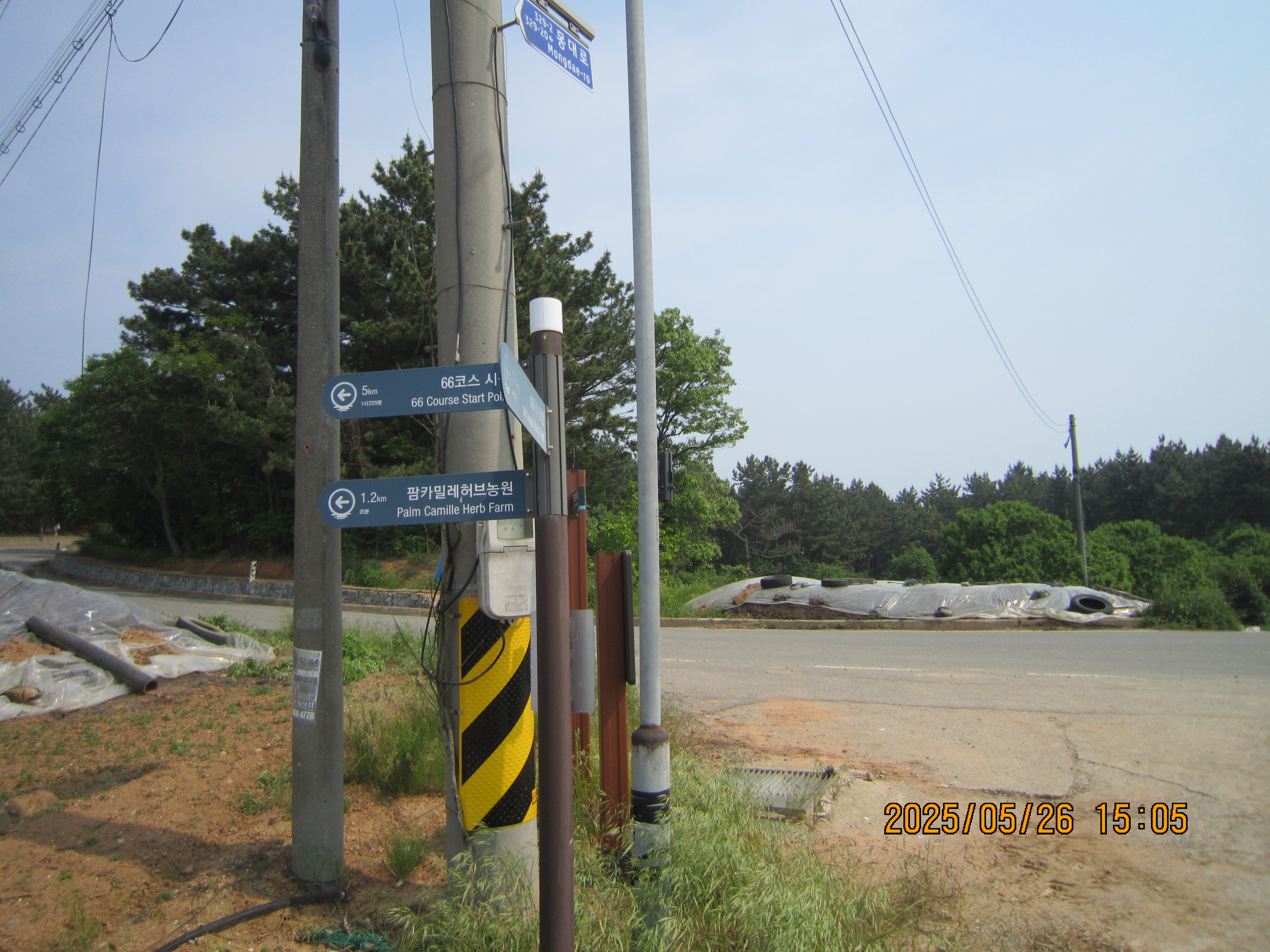 -15:05 몽산1리-1, 이정표 →66코스 시점 5Km, 좌회 레인보우캐슬리조트.