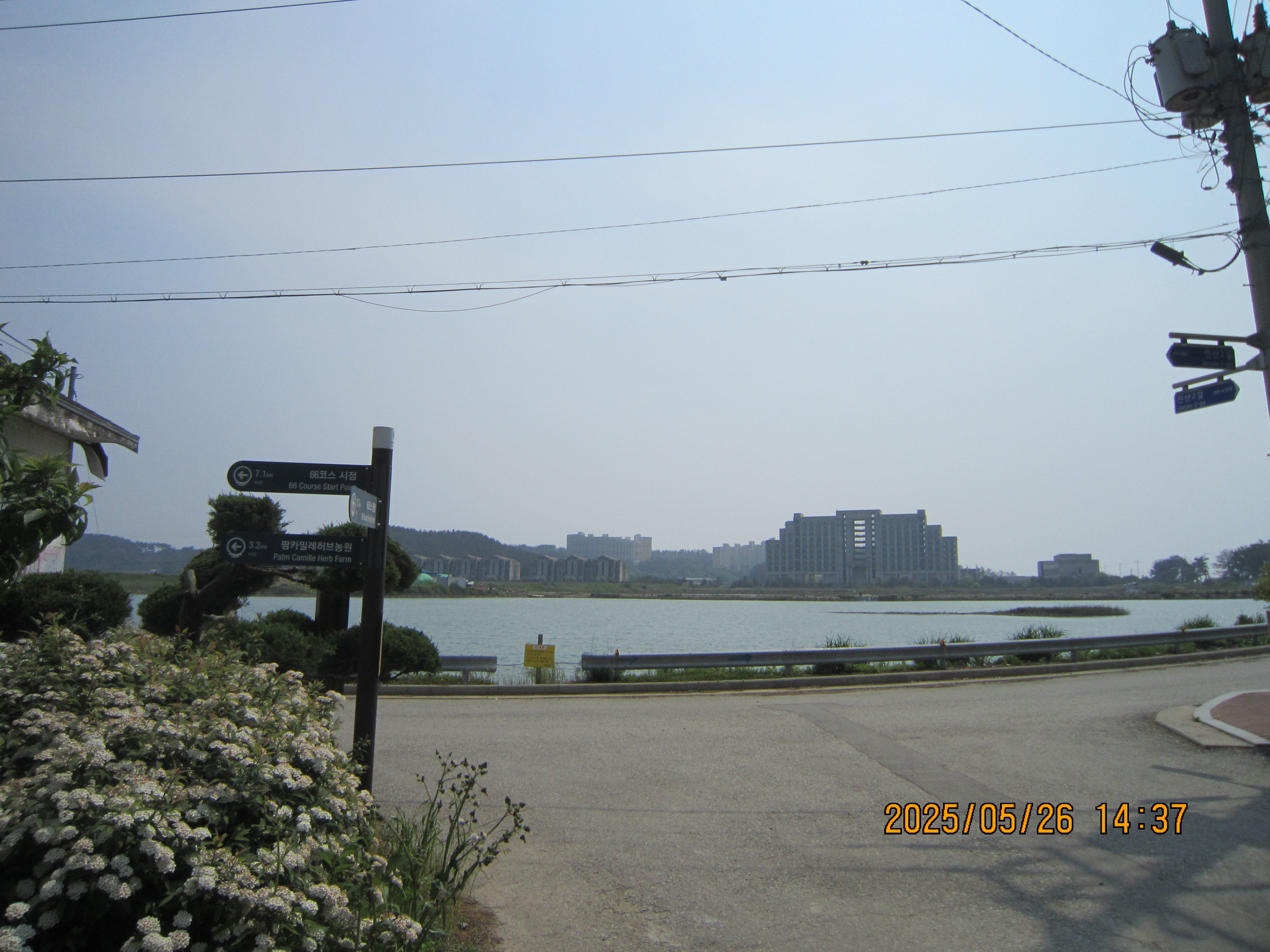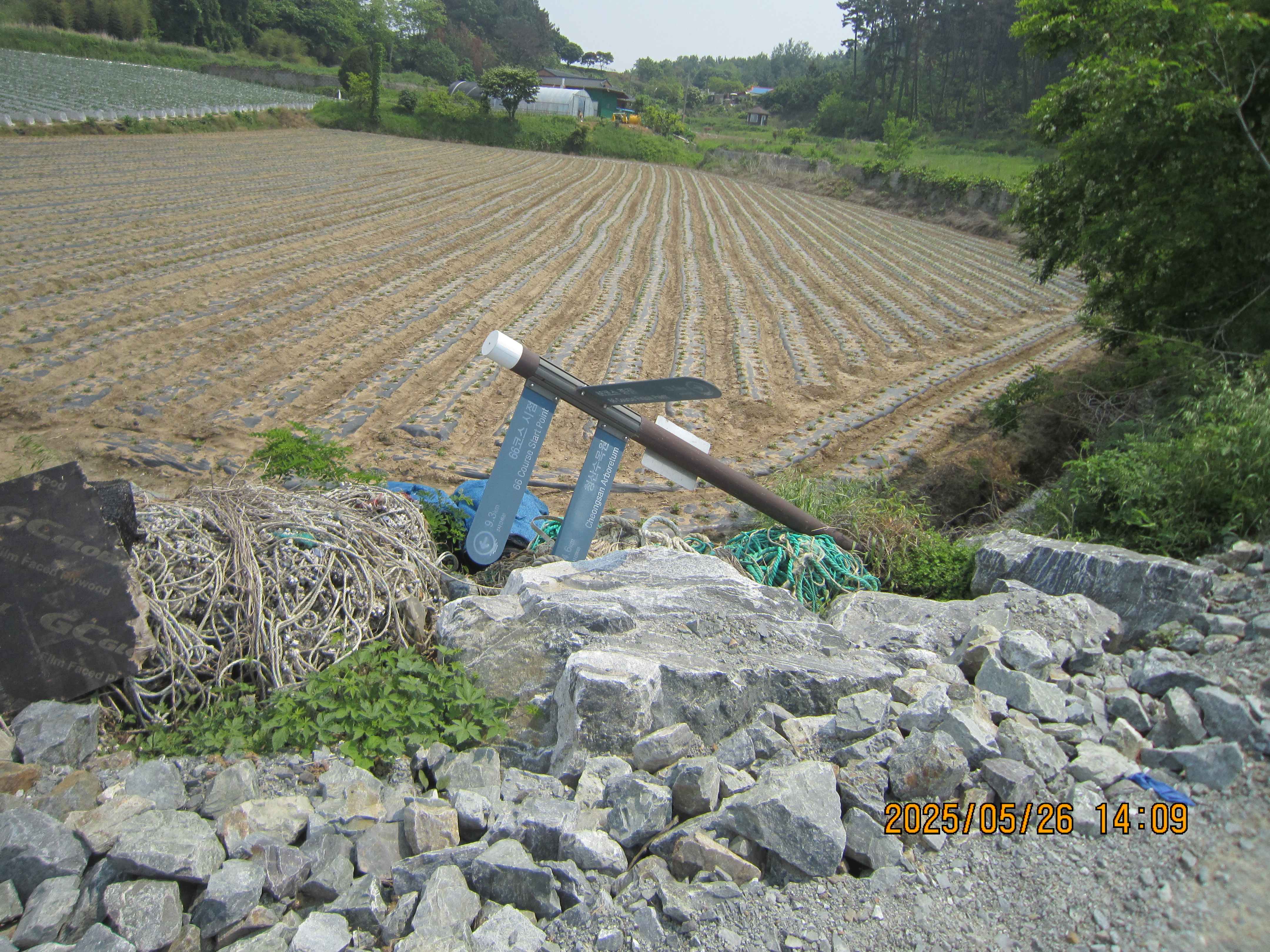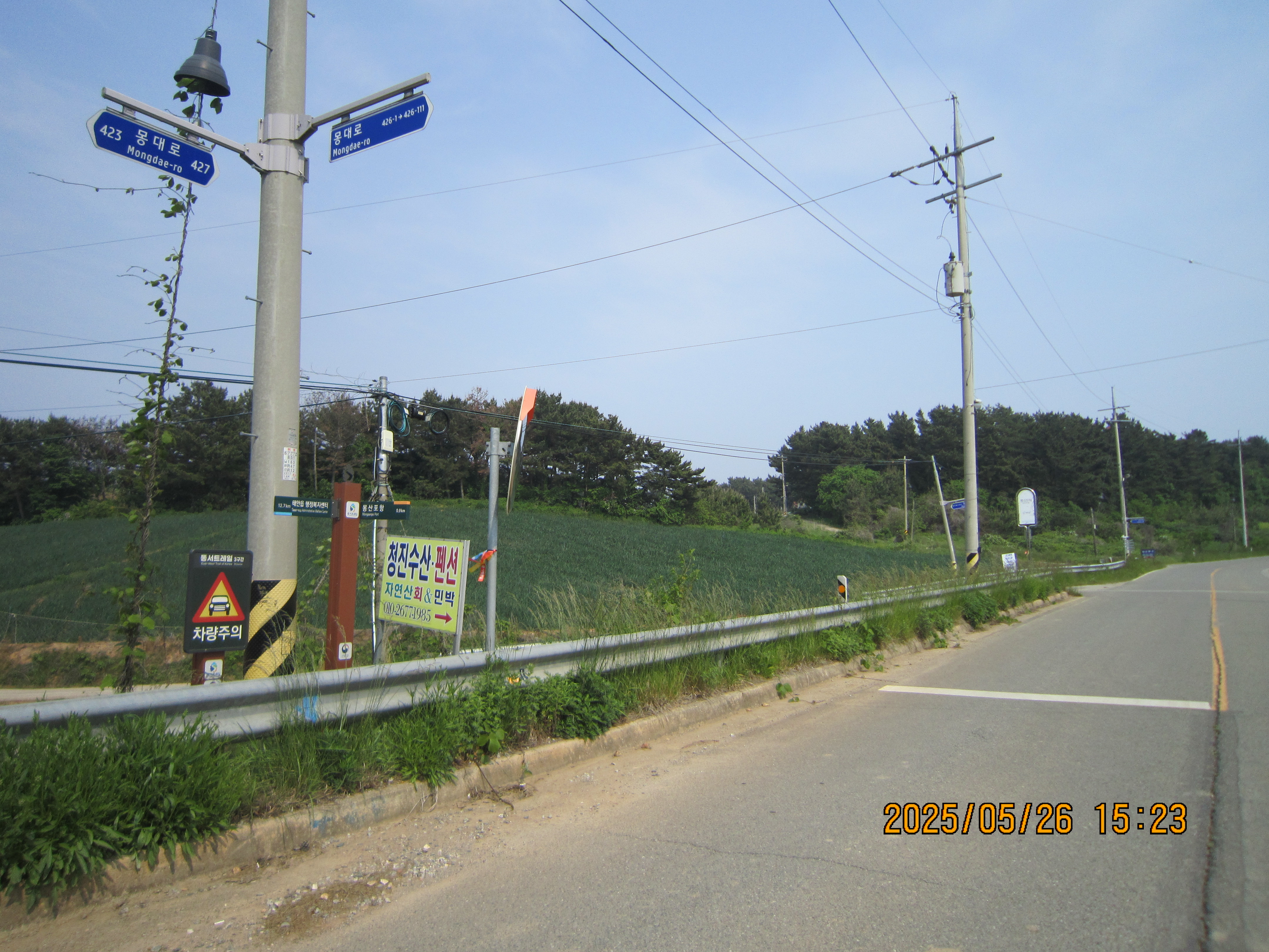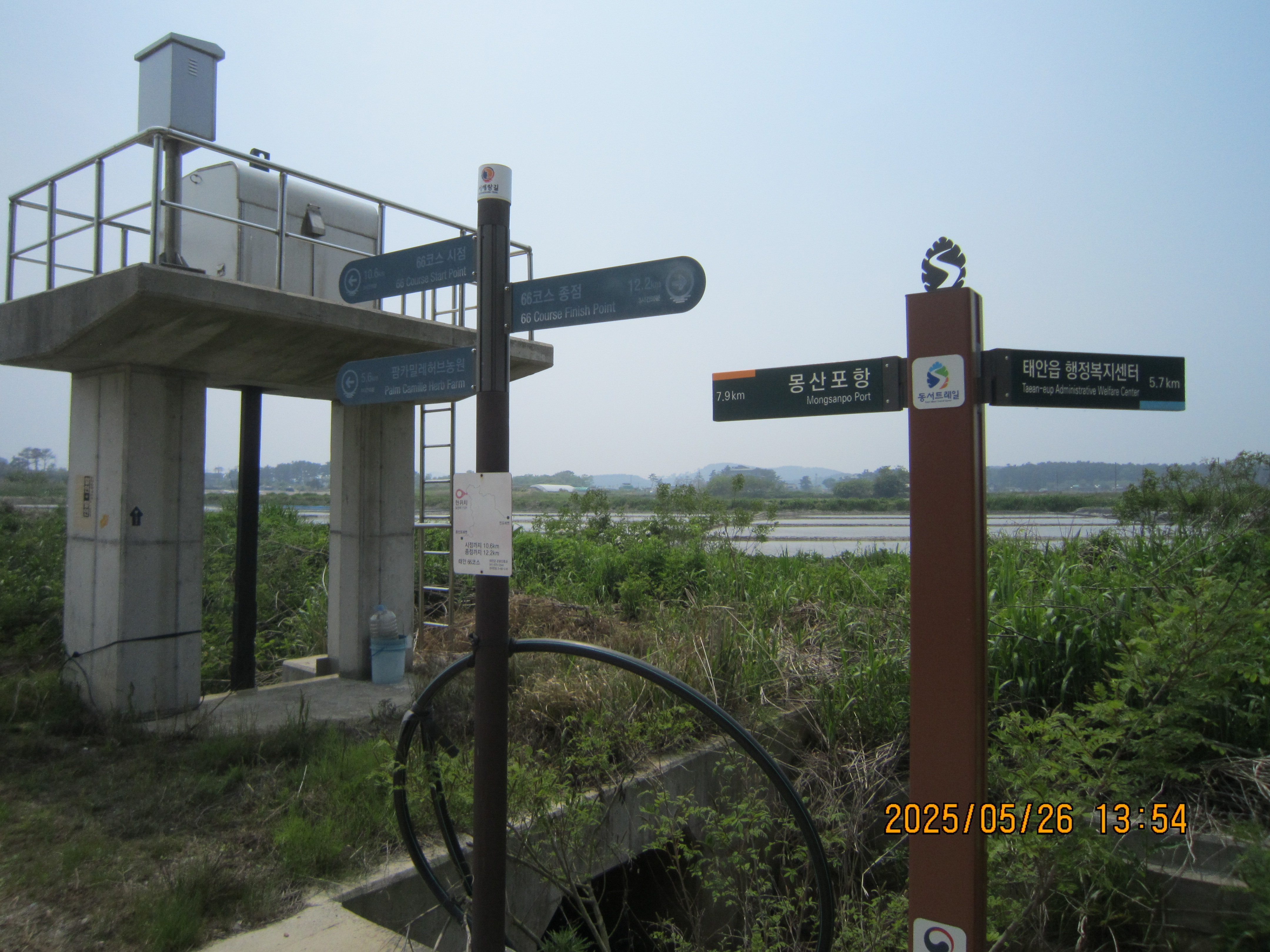 -15:05 몽산1리-1, 이정표 →66코스 시점 5Km, 좌회 레인보우캐슬리조트.