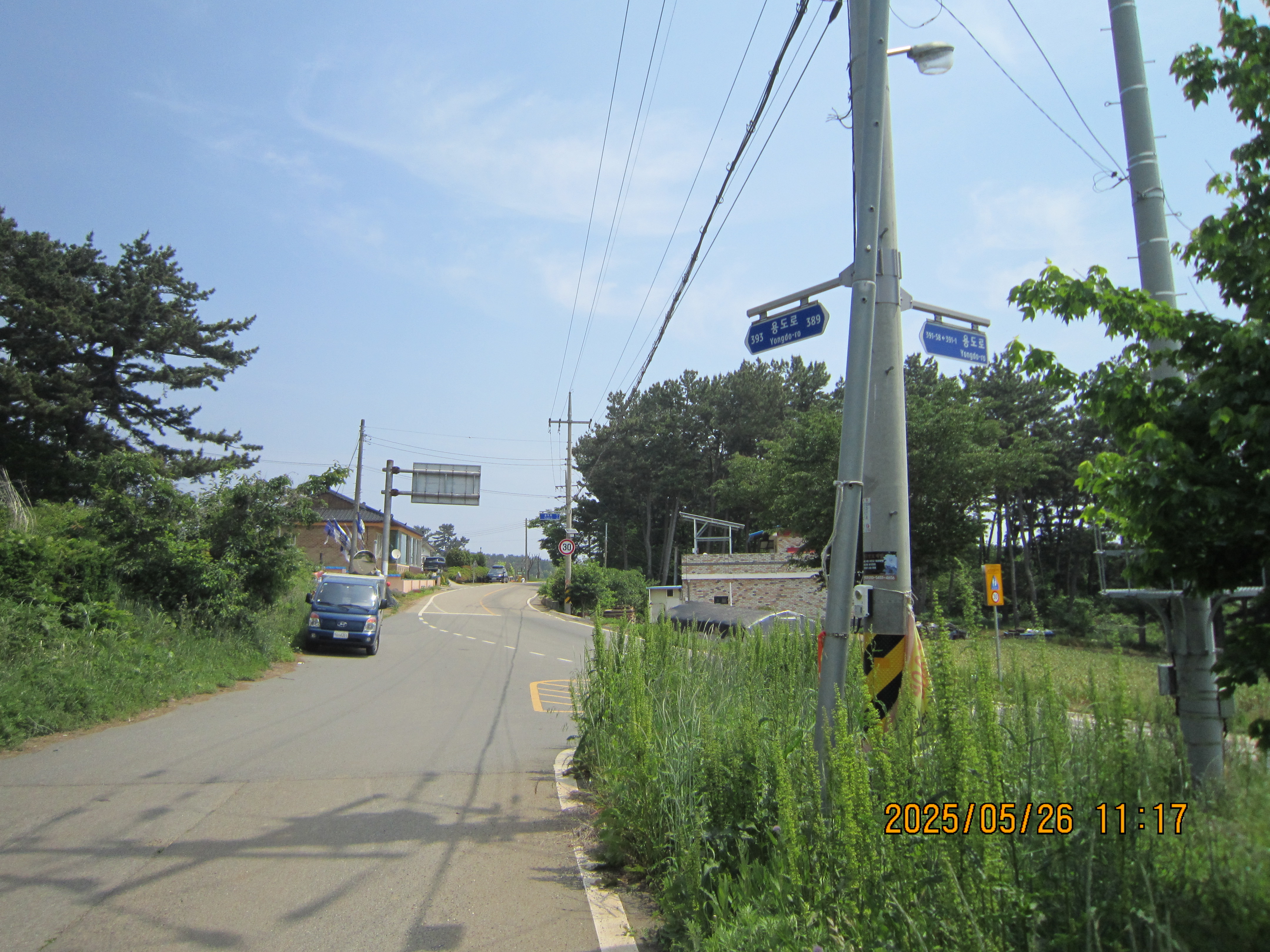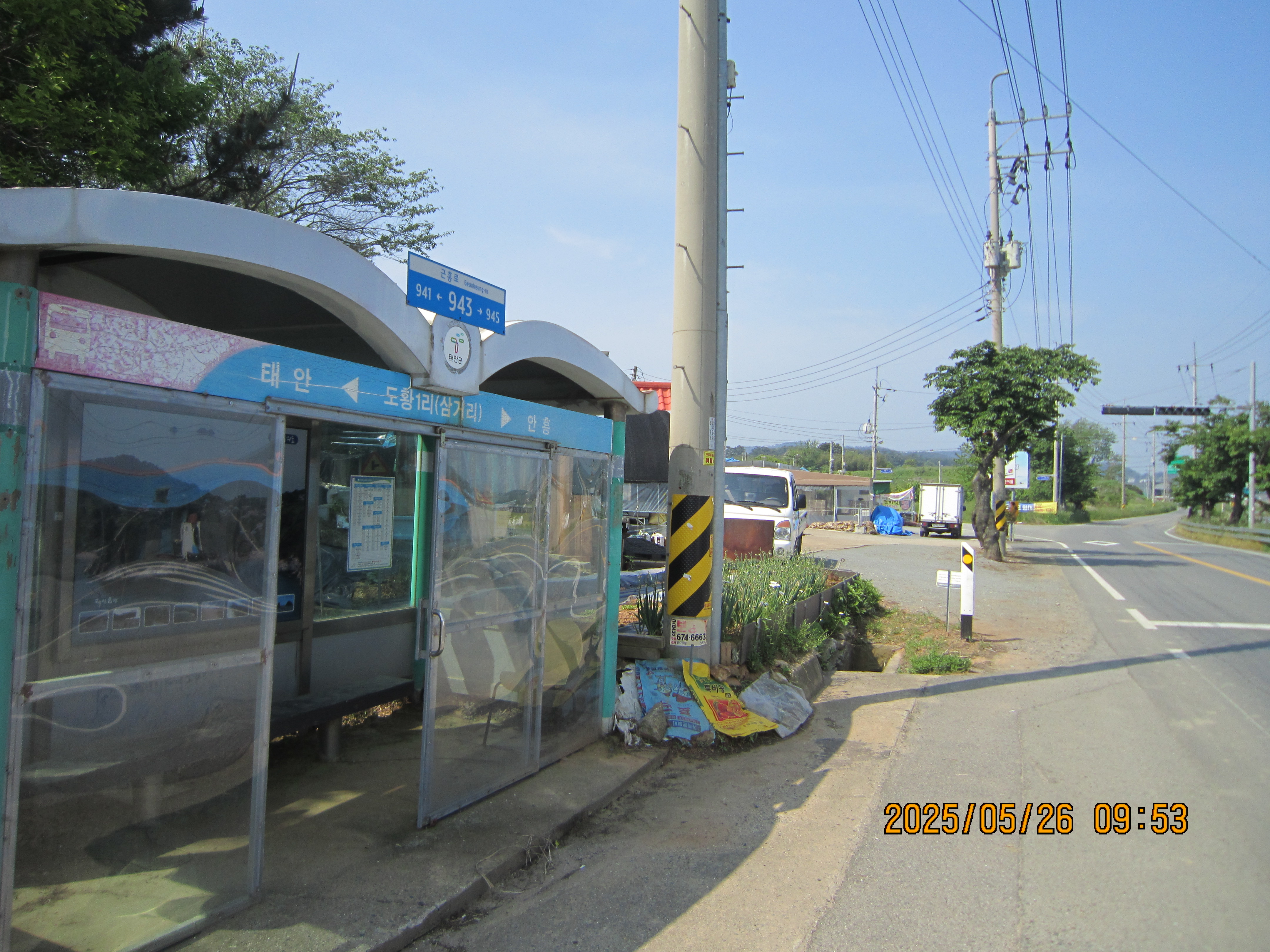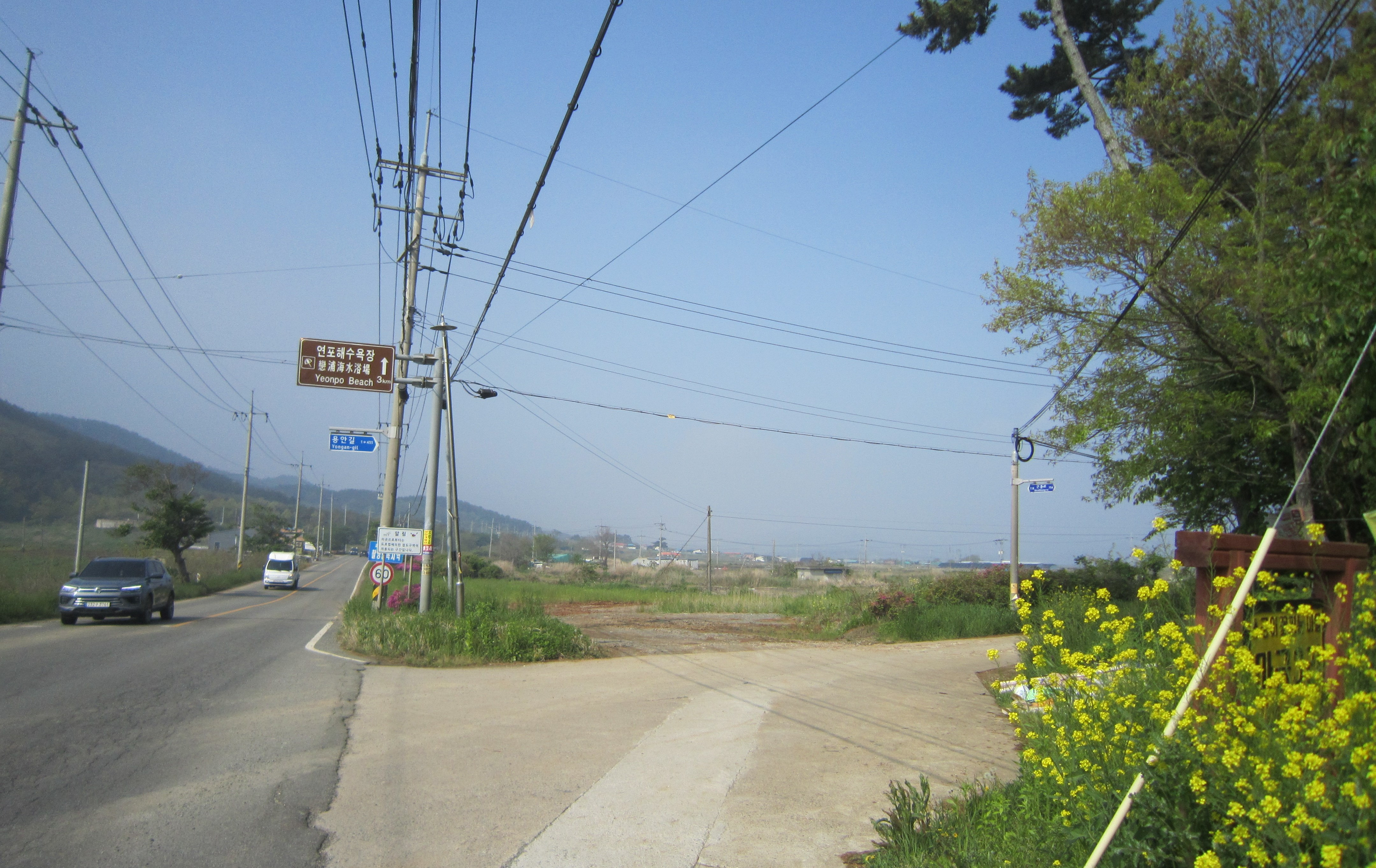 -09:53 도황1리삼거리 버스정류장 지나 연포해수욕장안내판 좌측 고장동마을길로 진행.