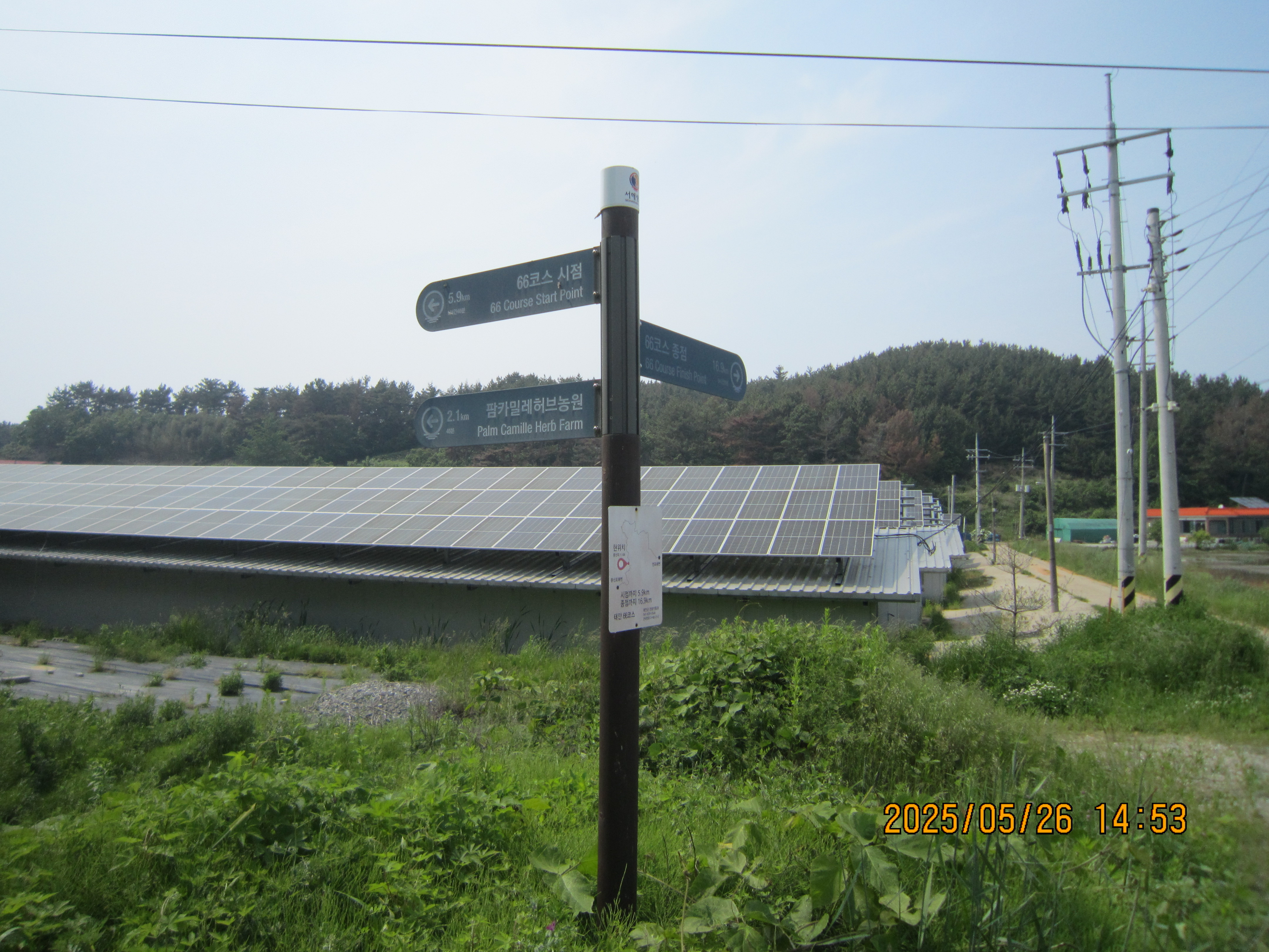 -14:53 태양광시설 지나 이정표 →66코스 시점 5.9Km우회