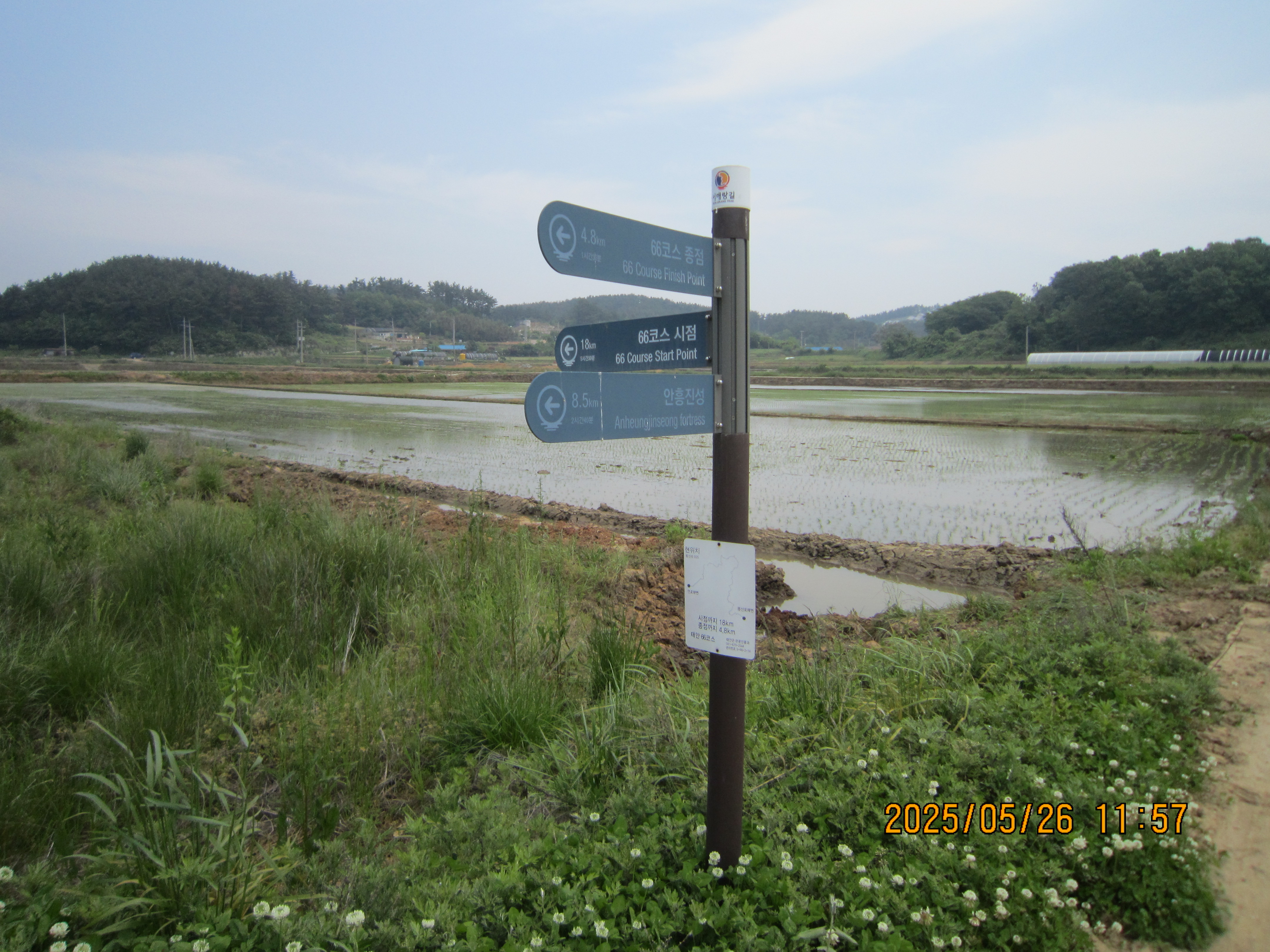 -11:57 농로길 이정표 ←66코스 시점 18Km, 이정표는 좌측, 직진 농로따라 진행후 좌회
