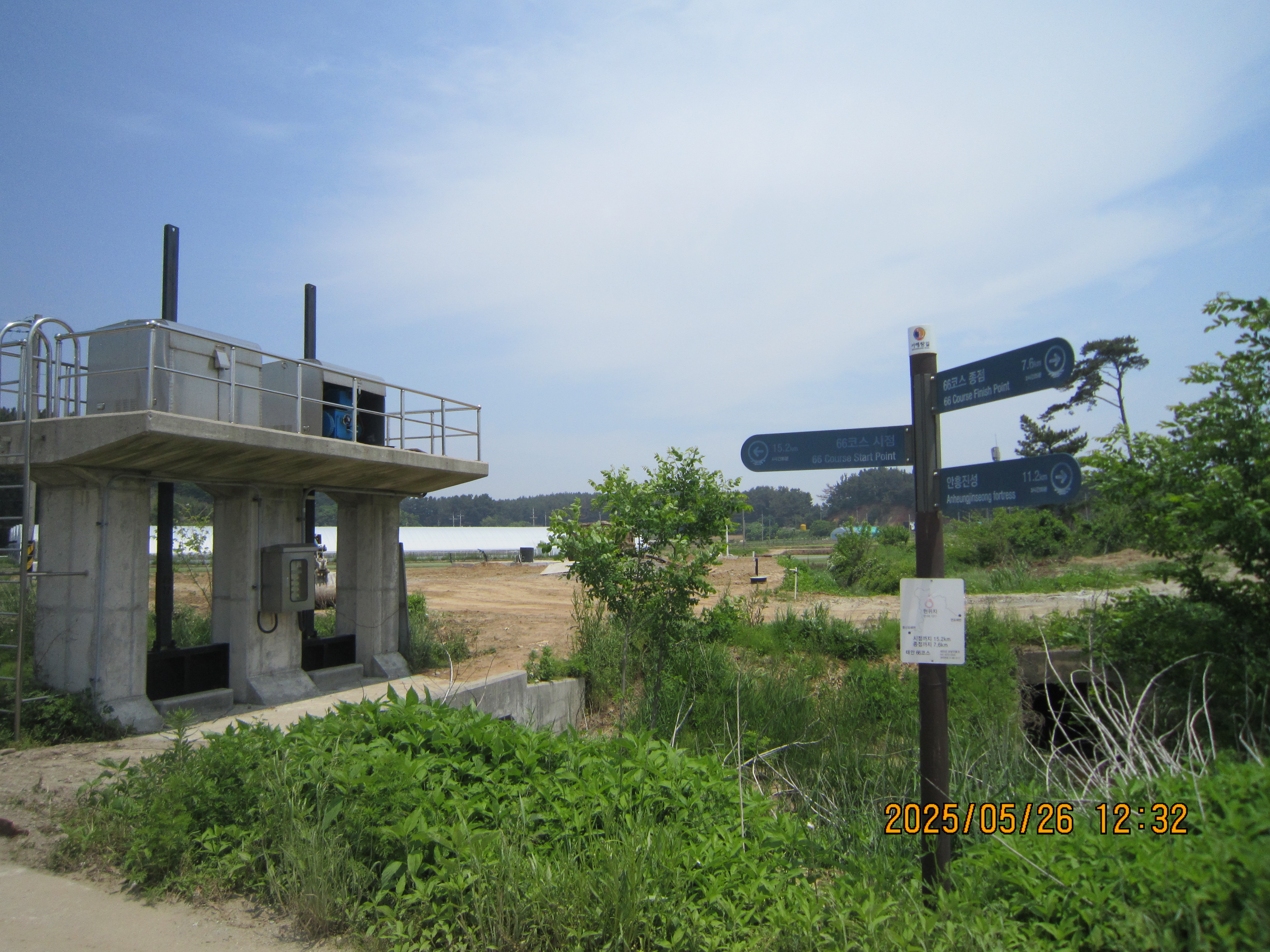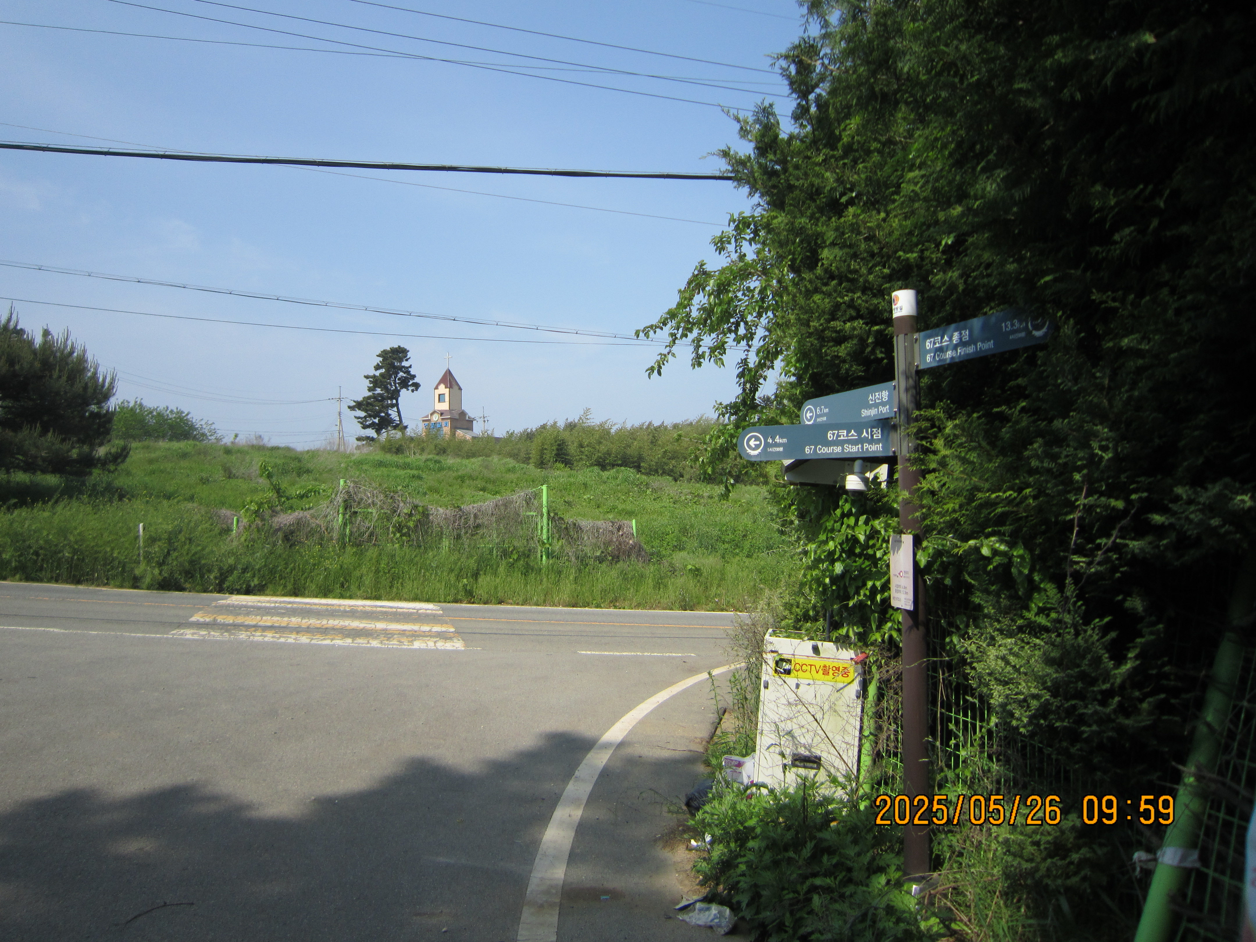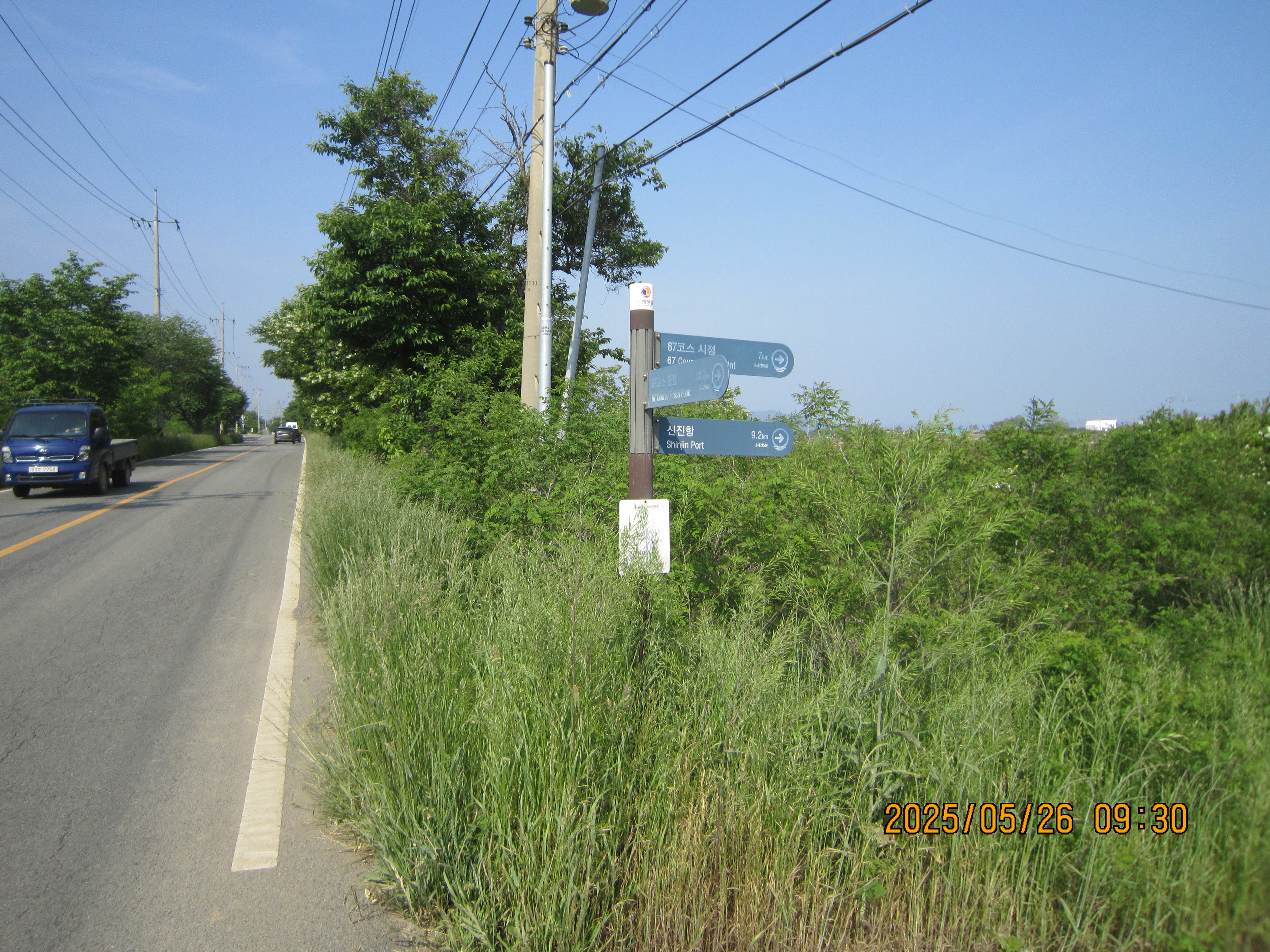 -09:28 603번도로(근흥로) 신대삼거리, 연포해수욕장3Km방향 도로따라 약350m진행후, 이정표 →67코스 시점 7Km방향 우측 시멘트농로길로 진행.