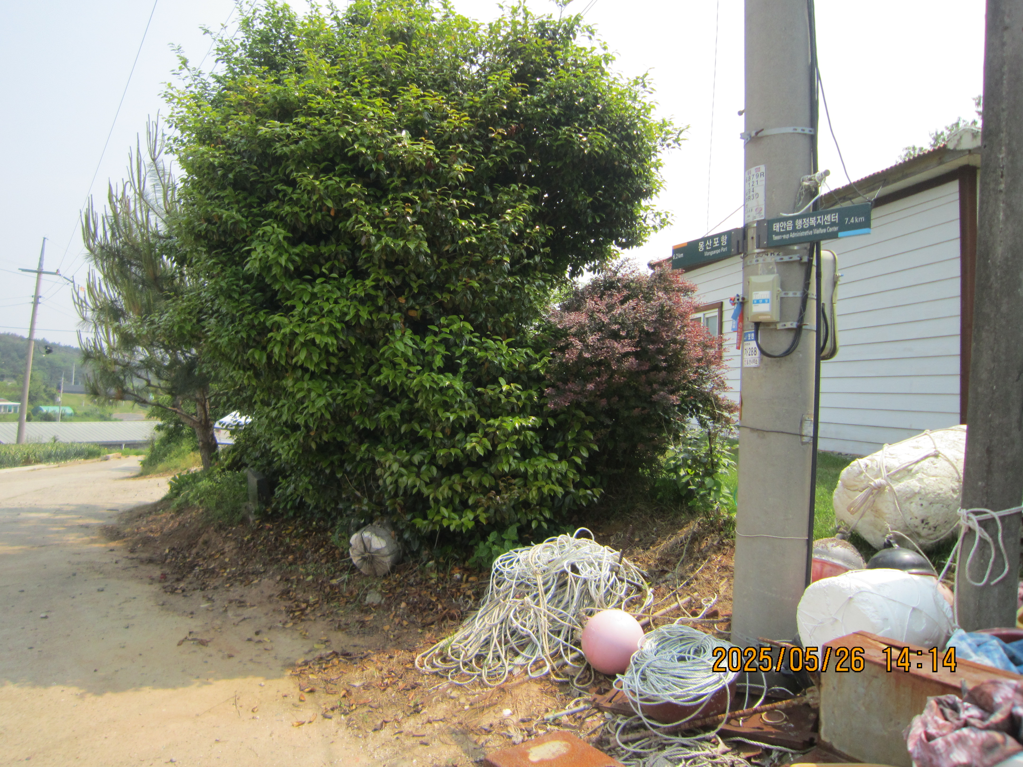 -15:23 몽산2리 밤나무골정류장, 이정표 →몽산포항 0.9Km우회