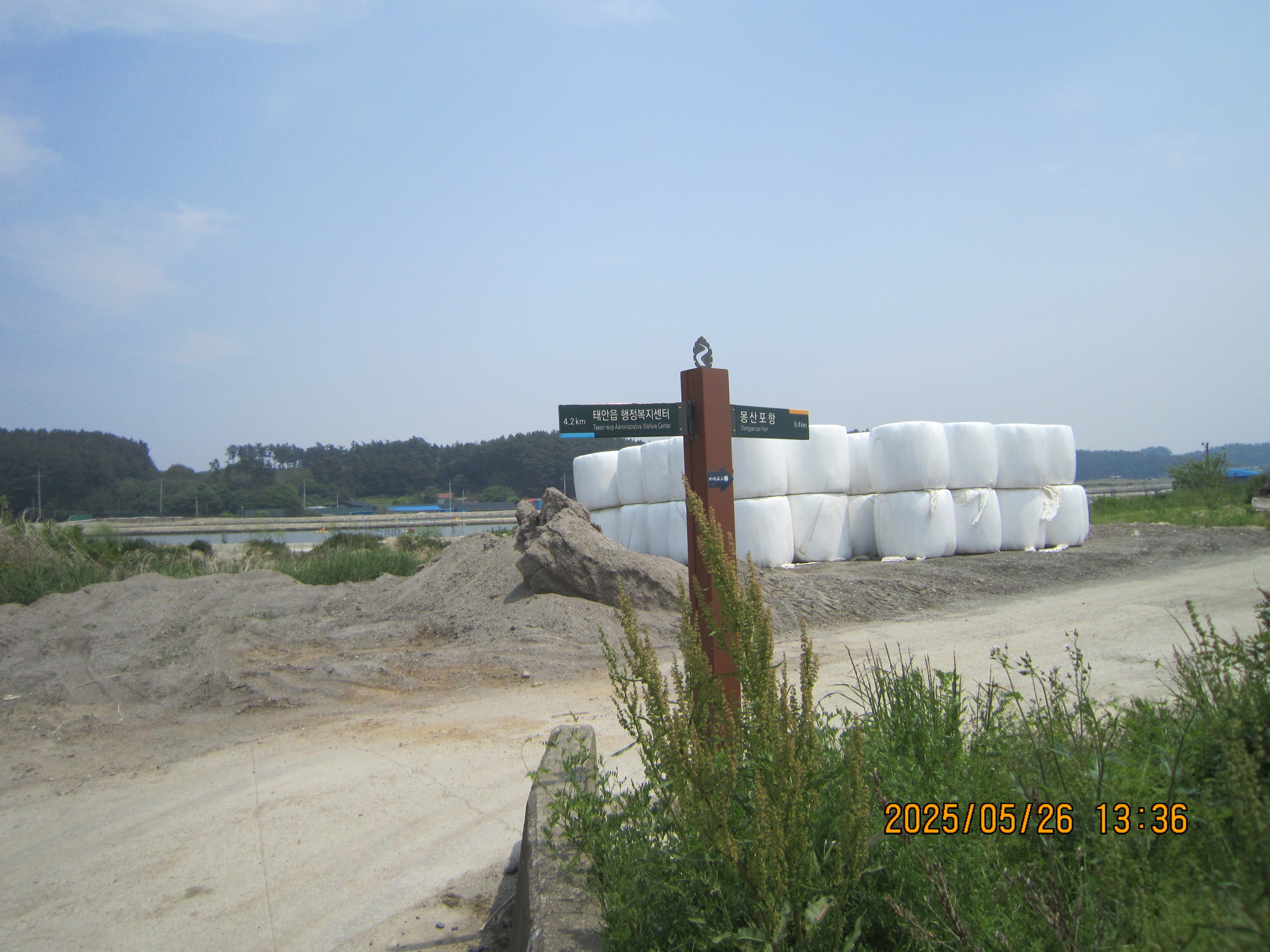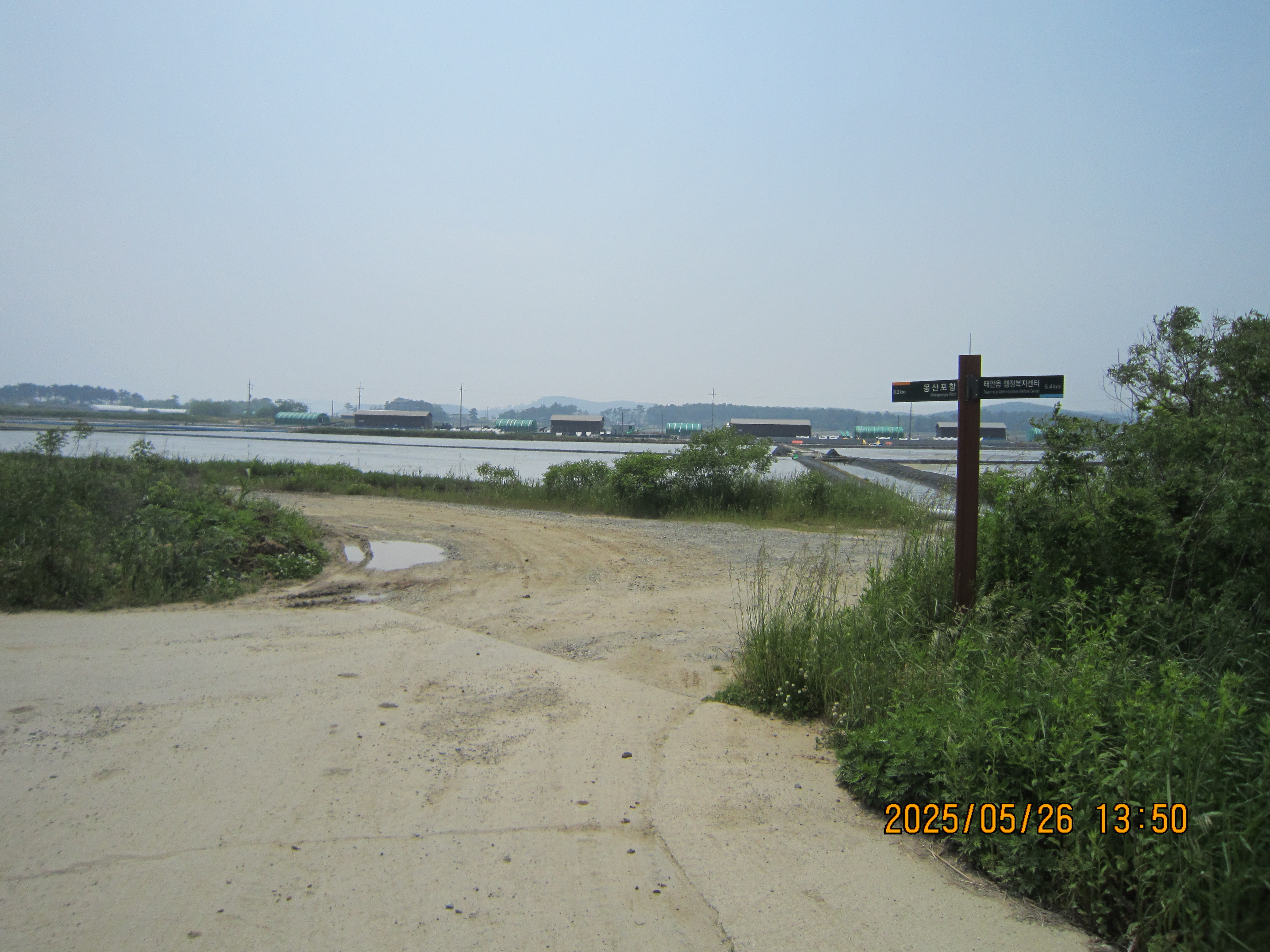 -13;36 이정표 →몽산포항 9.4Km, 우회, 남산수산을 지나 평화염전을 끼고 우측으로