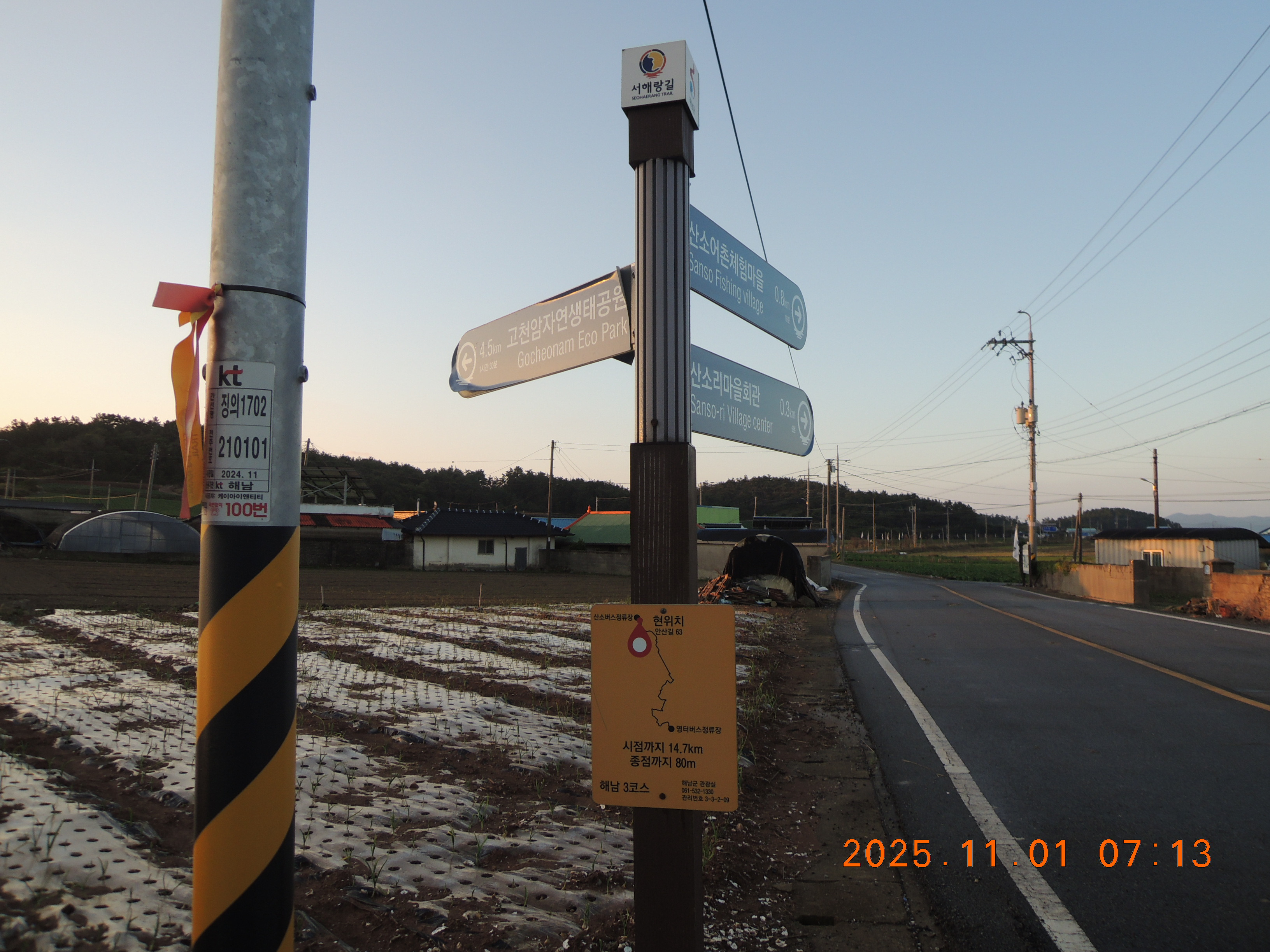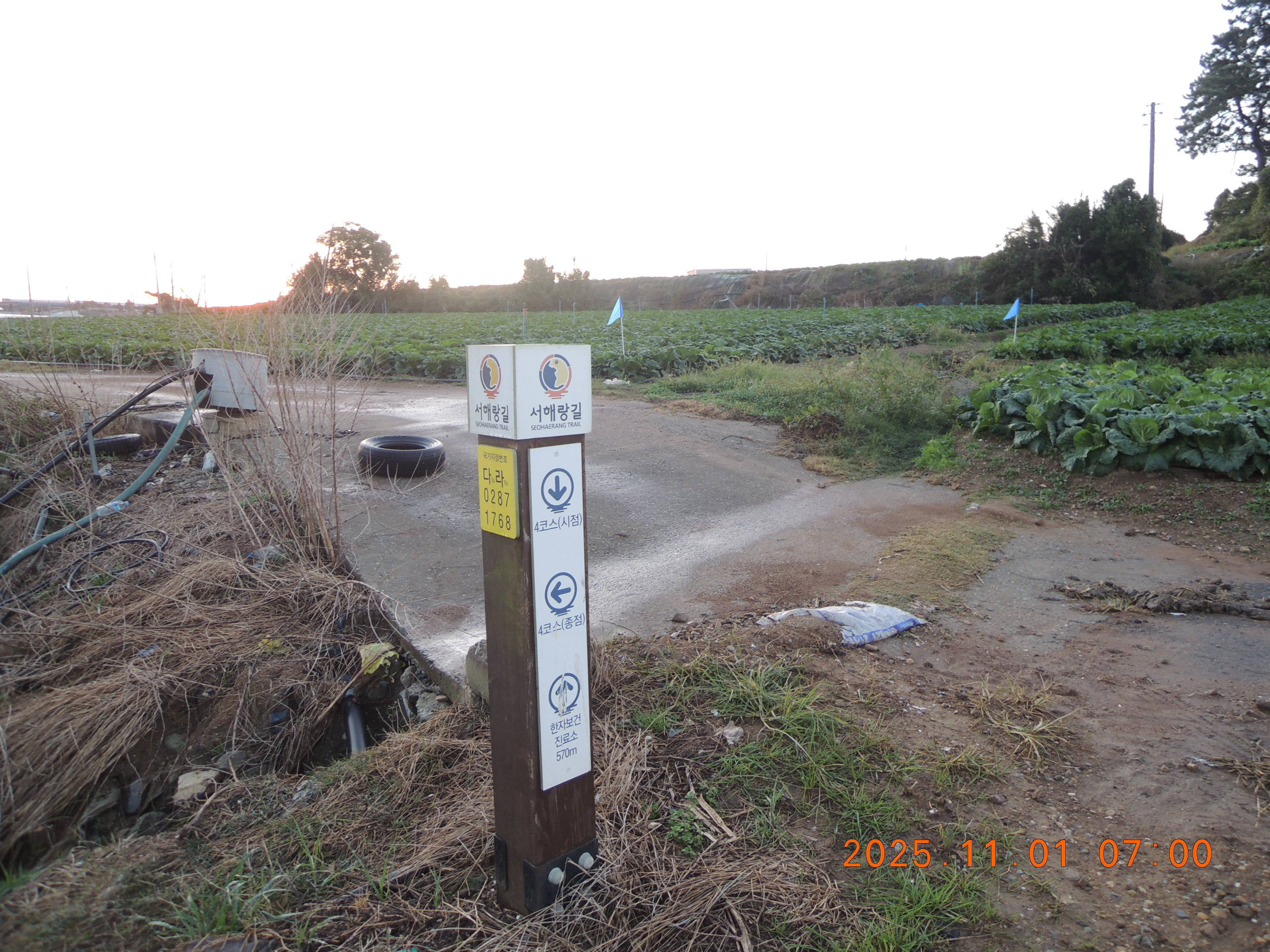 -08:49 고천암로419-50, 이정목 →3코스 시점방향 우측으로 꺽어