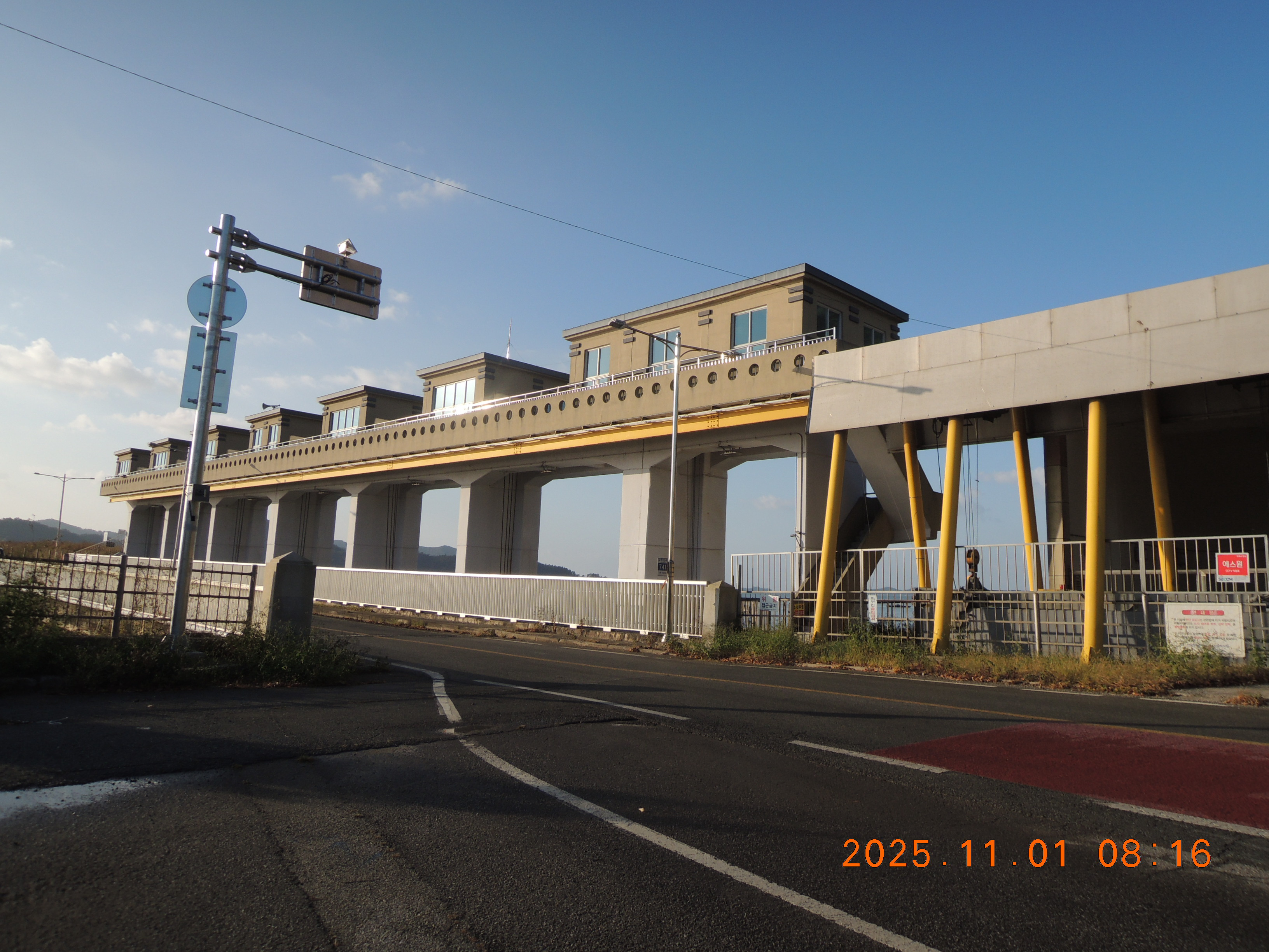 -08:24 고천암로 남해배수갑문 건너 방조제도로따라 화산면/황산면경계표지.