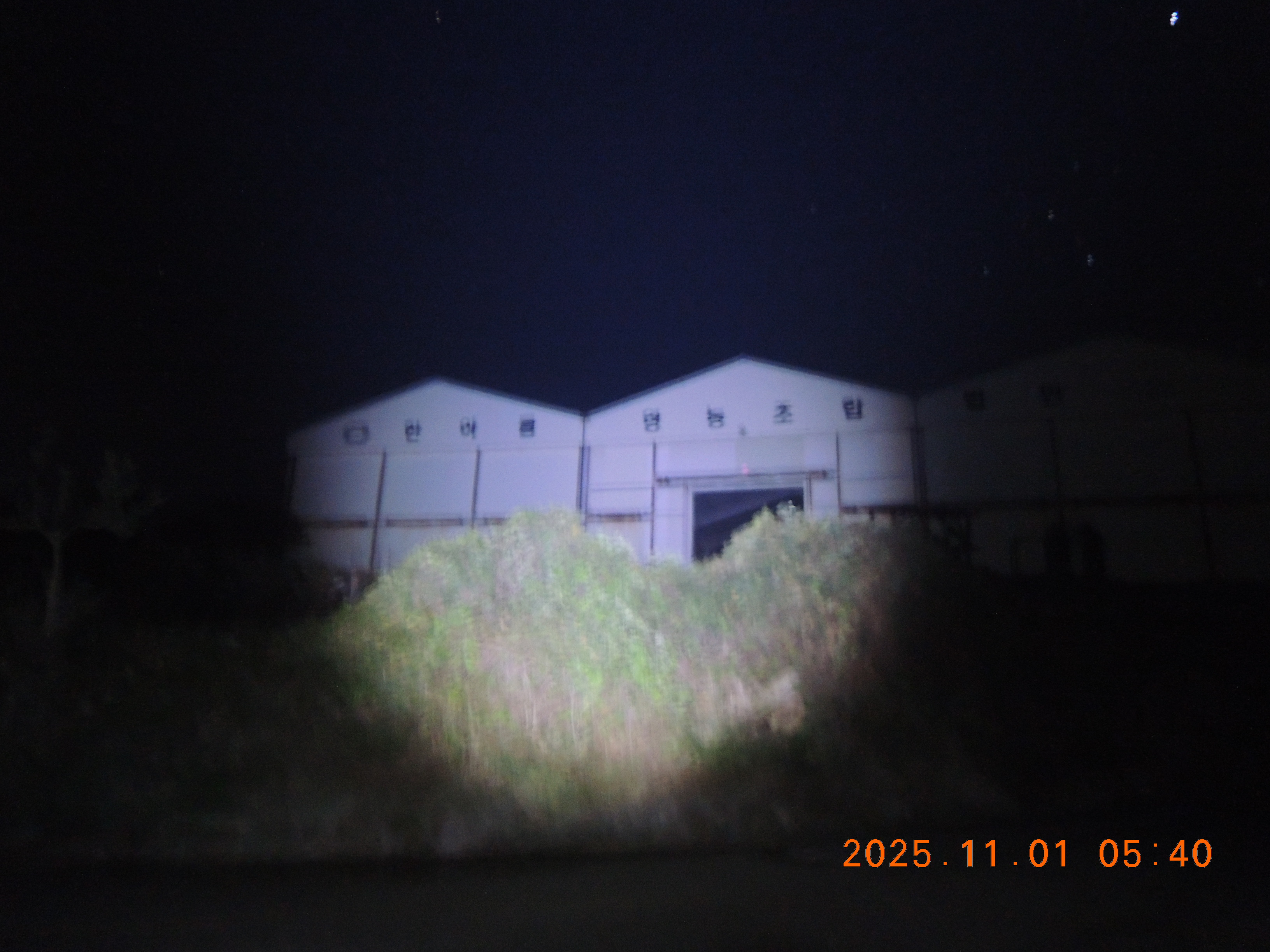 -07:00 수로다리 건너 이정목 좌회후 창고건물 개들이 난리부르스, 좌회