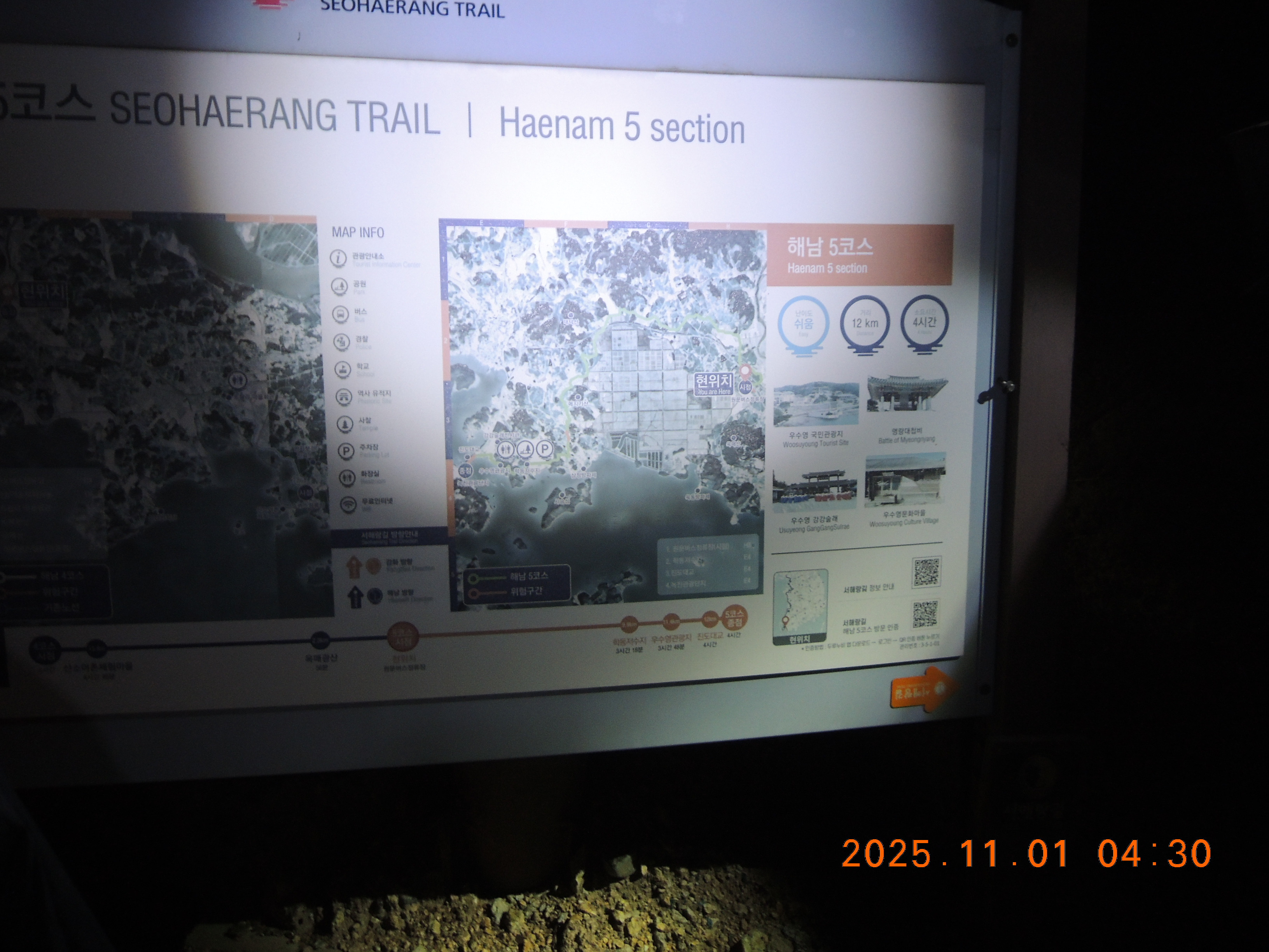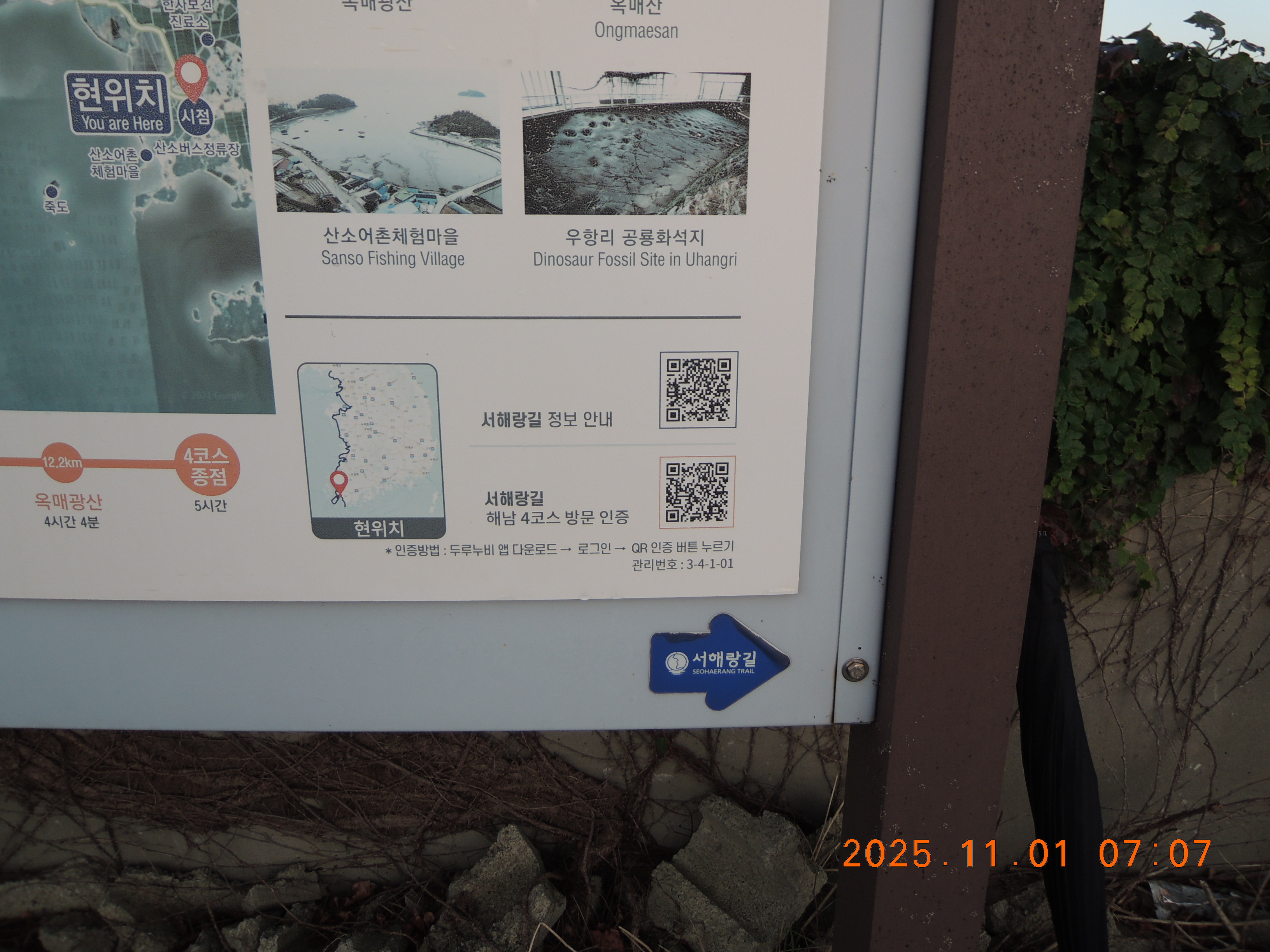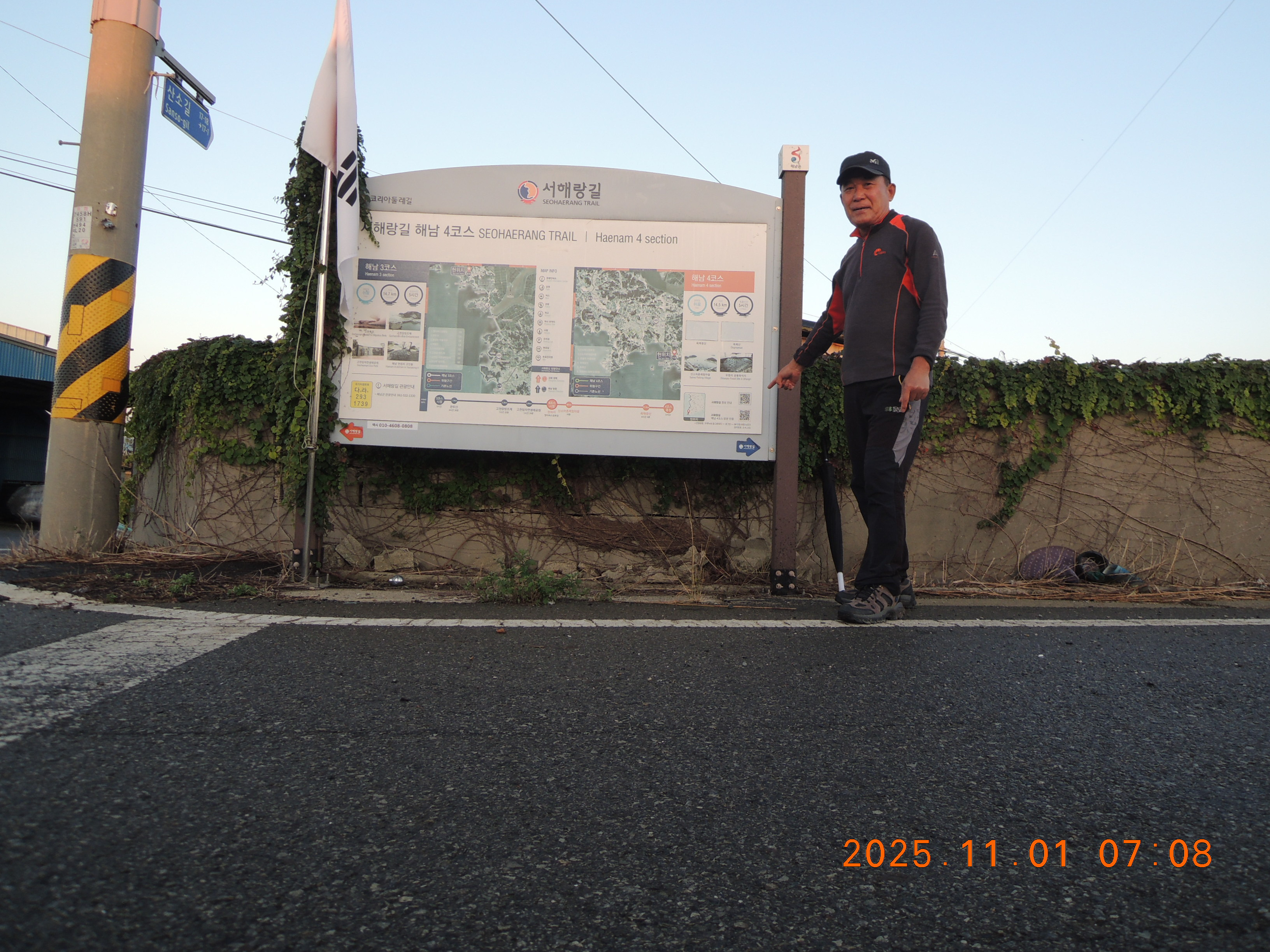 -07:07 서해랑길 해남 4코스 시·종점안내판 확인후, 이어서 3코스 진행.