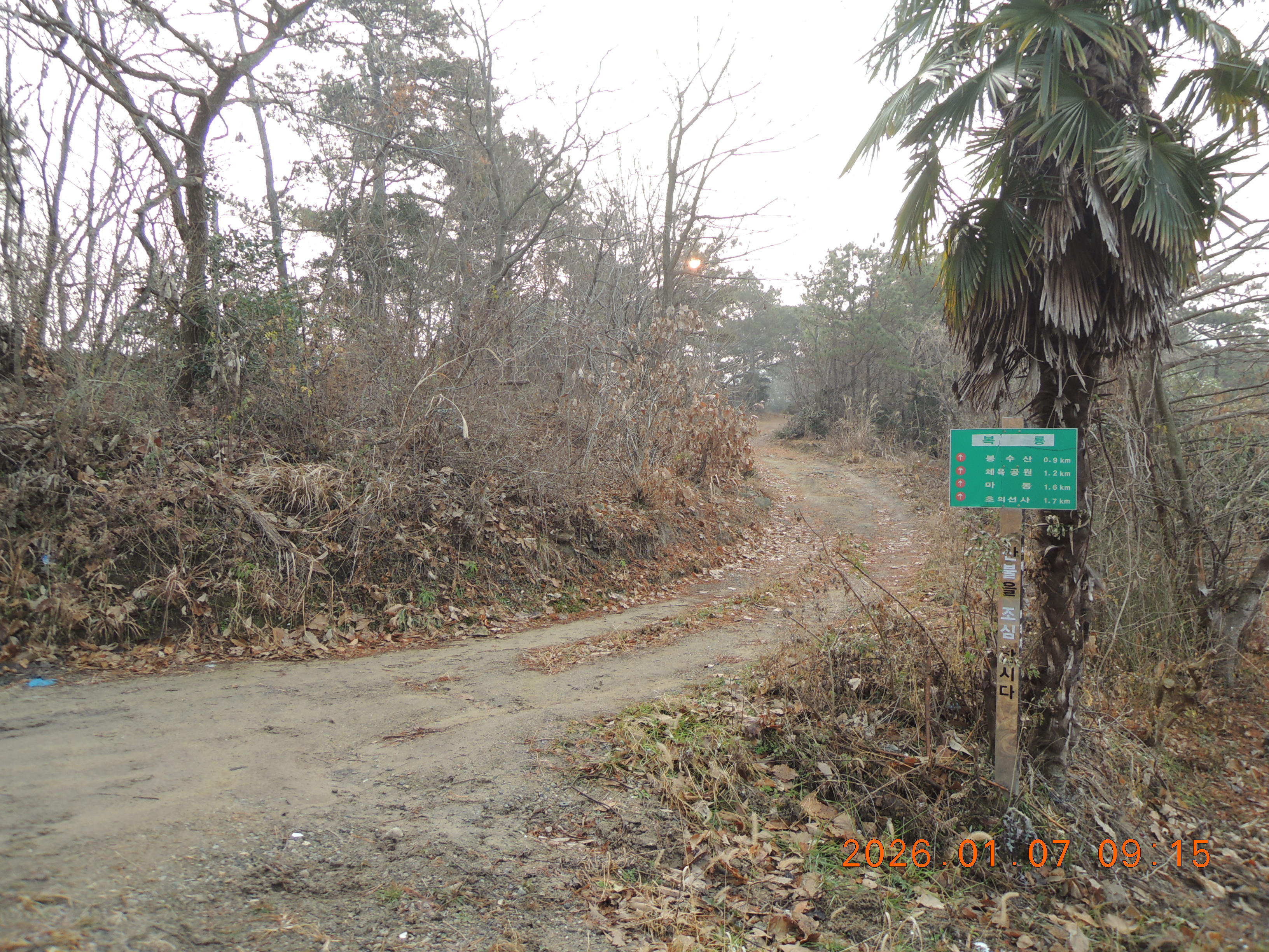 -09:15 봉수산 0.9Km 등산로입구, 복룡고개에서 간식 및 휴식.