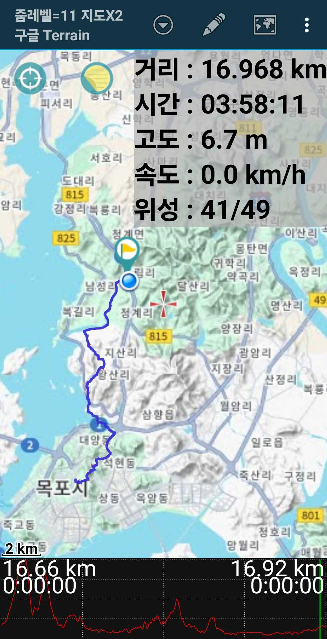 ○ 거리 및 소요시간 : 약34.9Km(GPS), 7시간41분(중식 및 휴식시간등 포함)