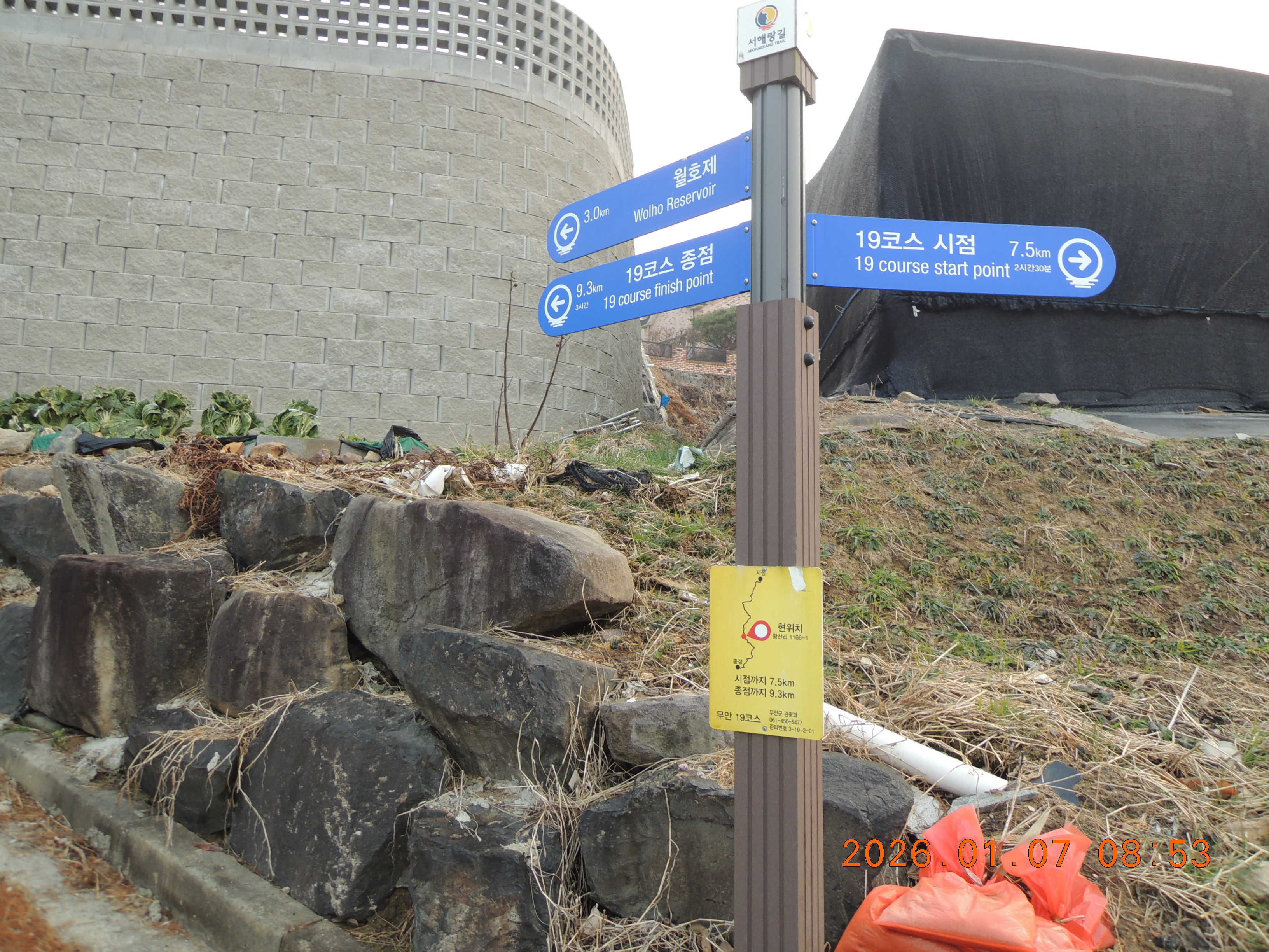 -08:27 1번국도 고하대로 암거통과후 좌측 1번국도옆 농로시멘트길로 진행