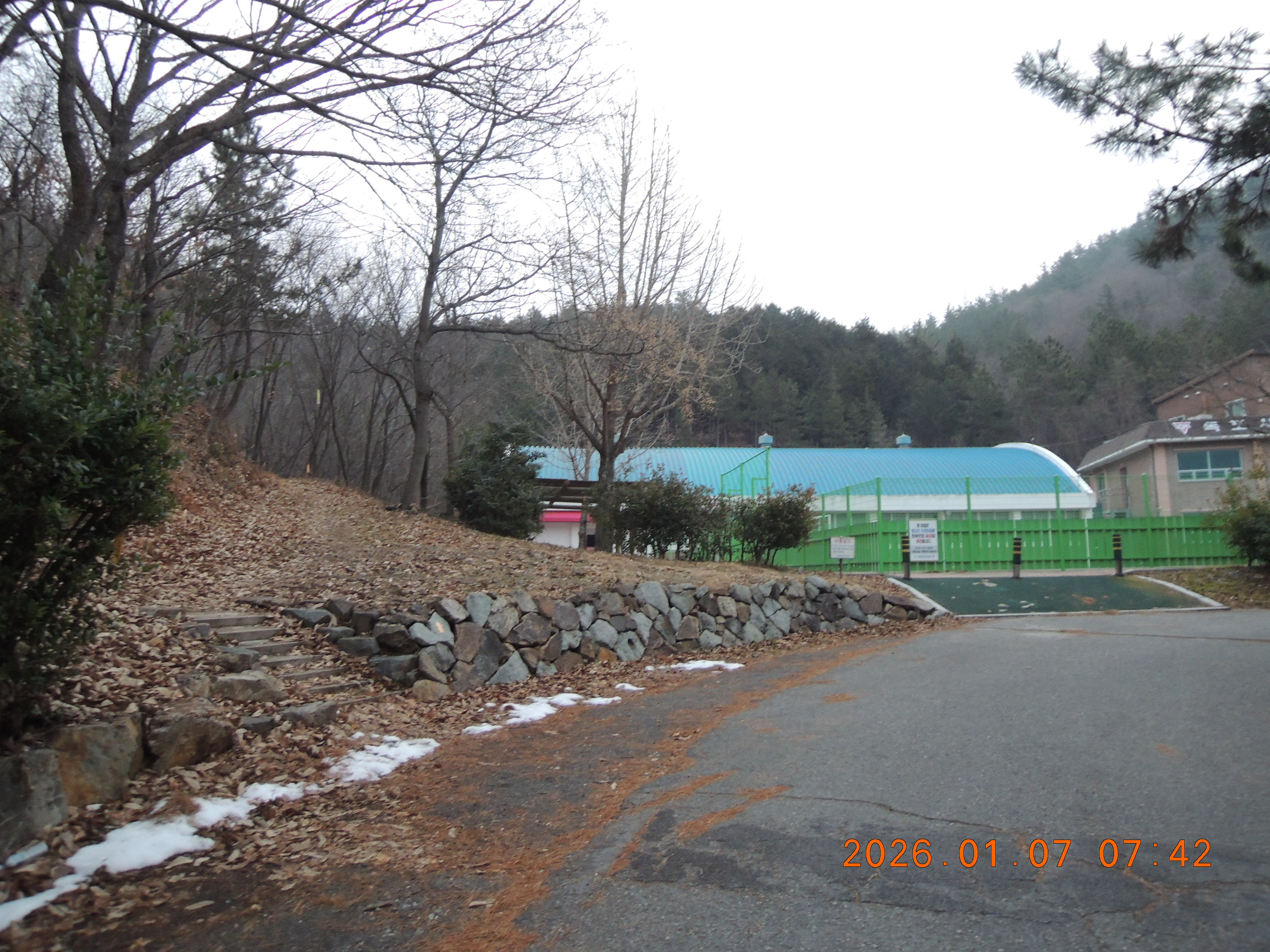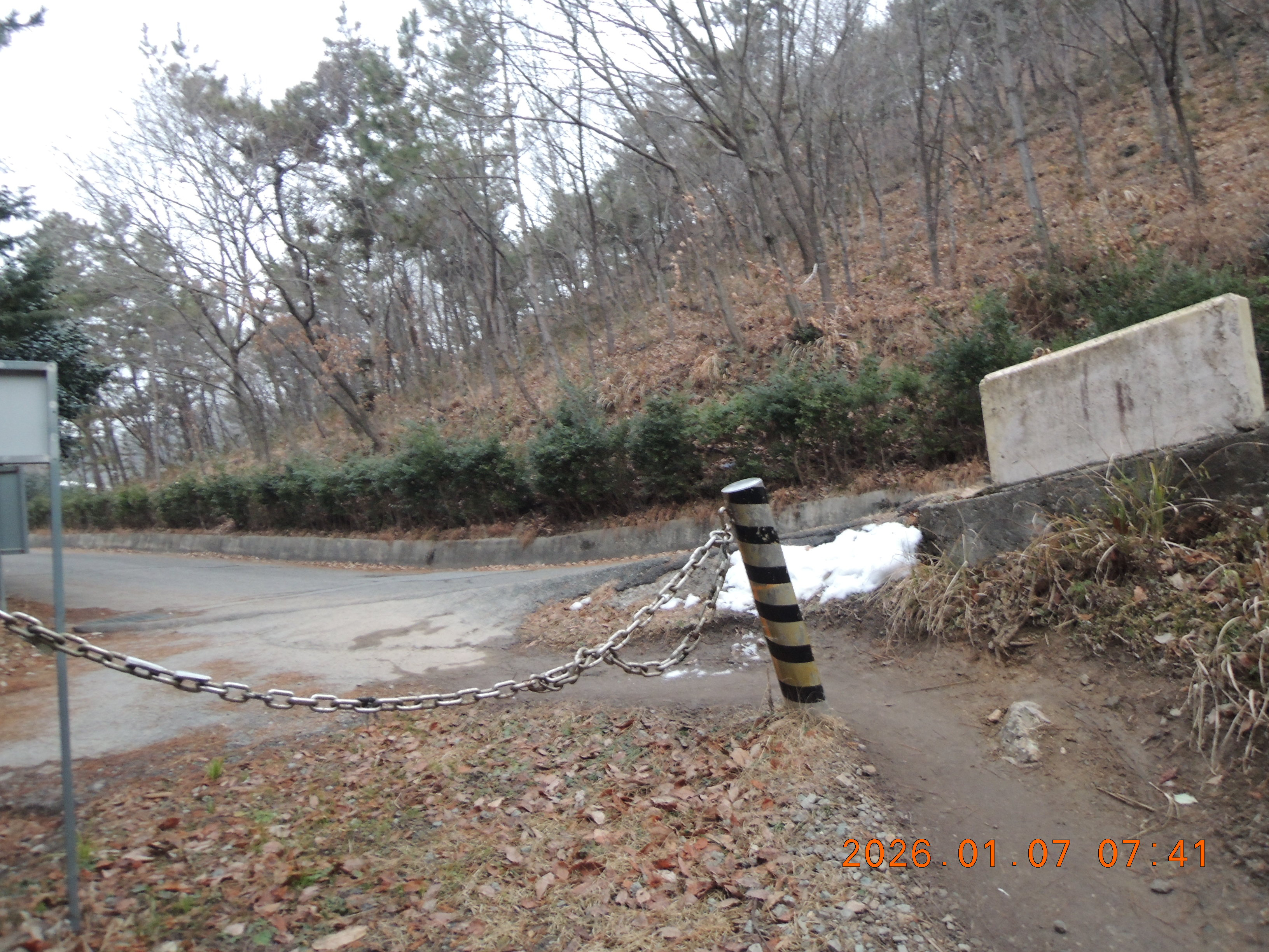 -07:36 제1저수지 좌측으로 진행후, 우측 목포 청소년수련원 뒤로 올라 좌회