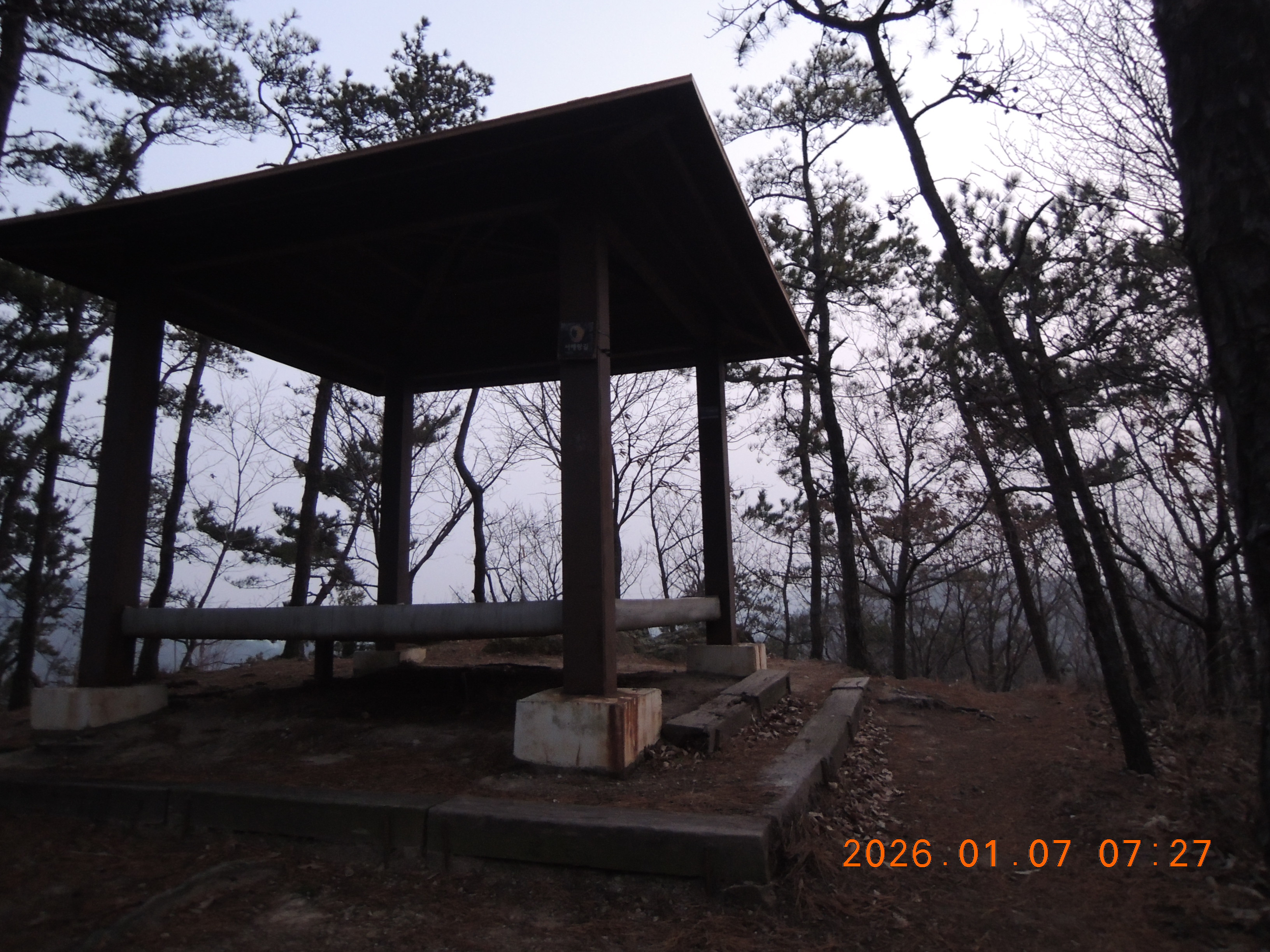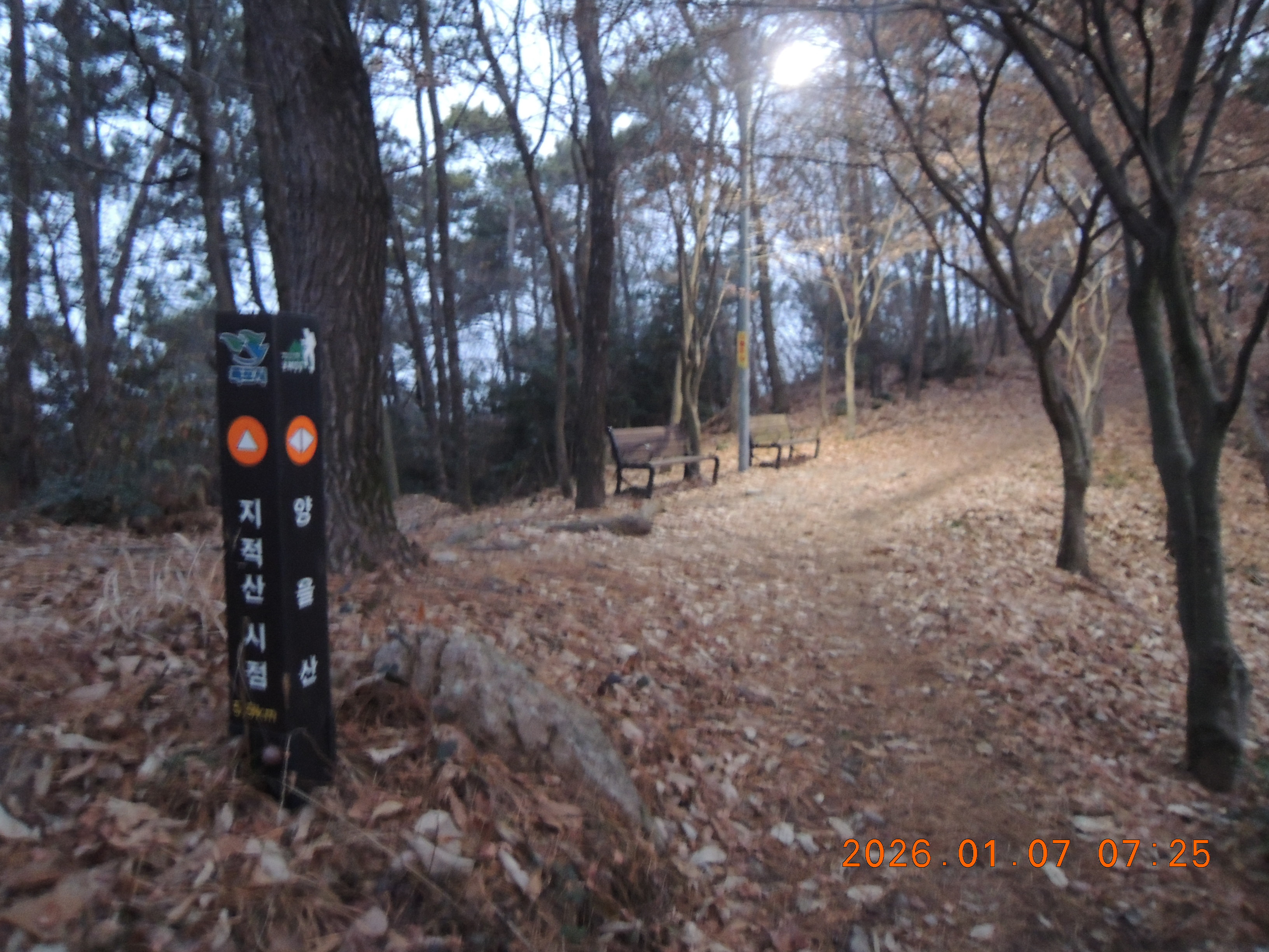 -07:27 약120m봉 지나 Y길 정자, 양을산산림욕장 우측으로 급 내려감.