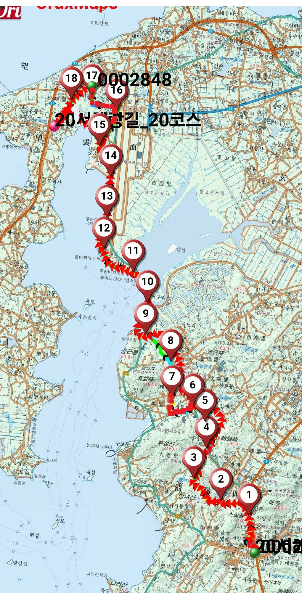 ※귀가시간 교통편이 임박, 마지막 무안공항옆을 지나며 강한바람을 맞으며 속도를 내고 무사히 계획한 20코스를 마침.