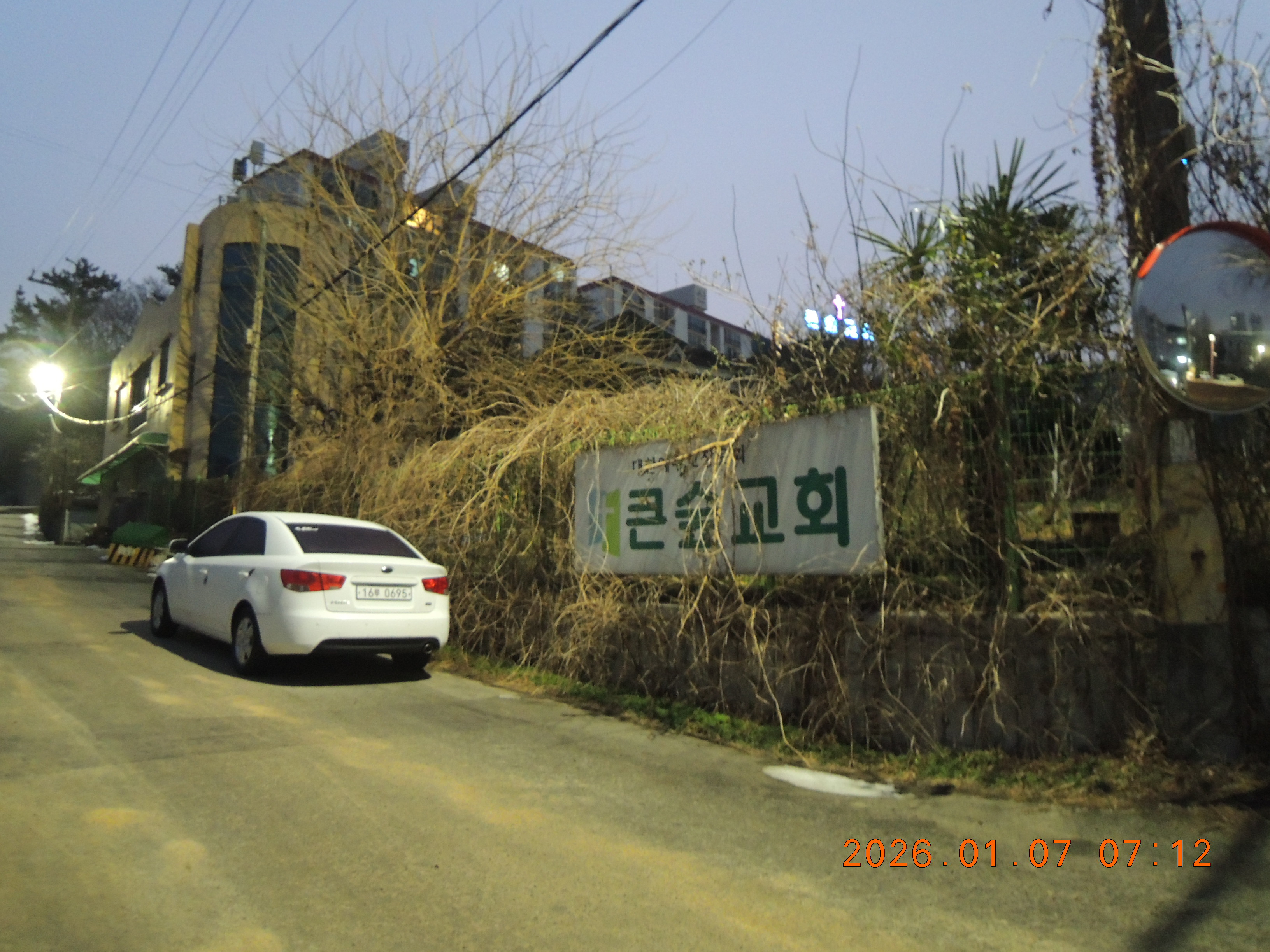 -07:12 목포현대병원앞을 지나 큰숲교회사거리 좌회후, 빛과소금교회 우측 산으로