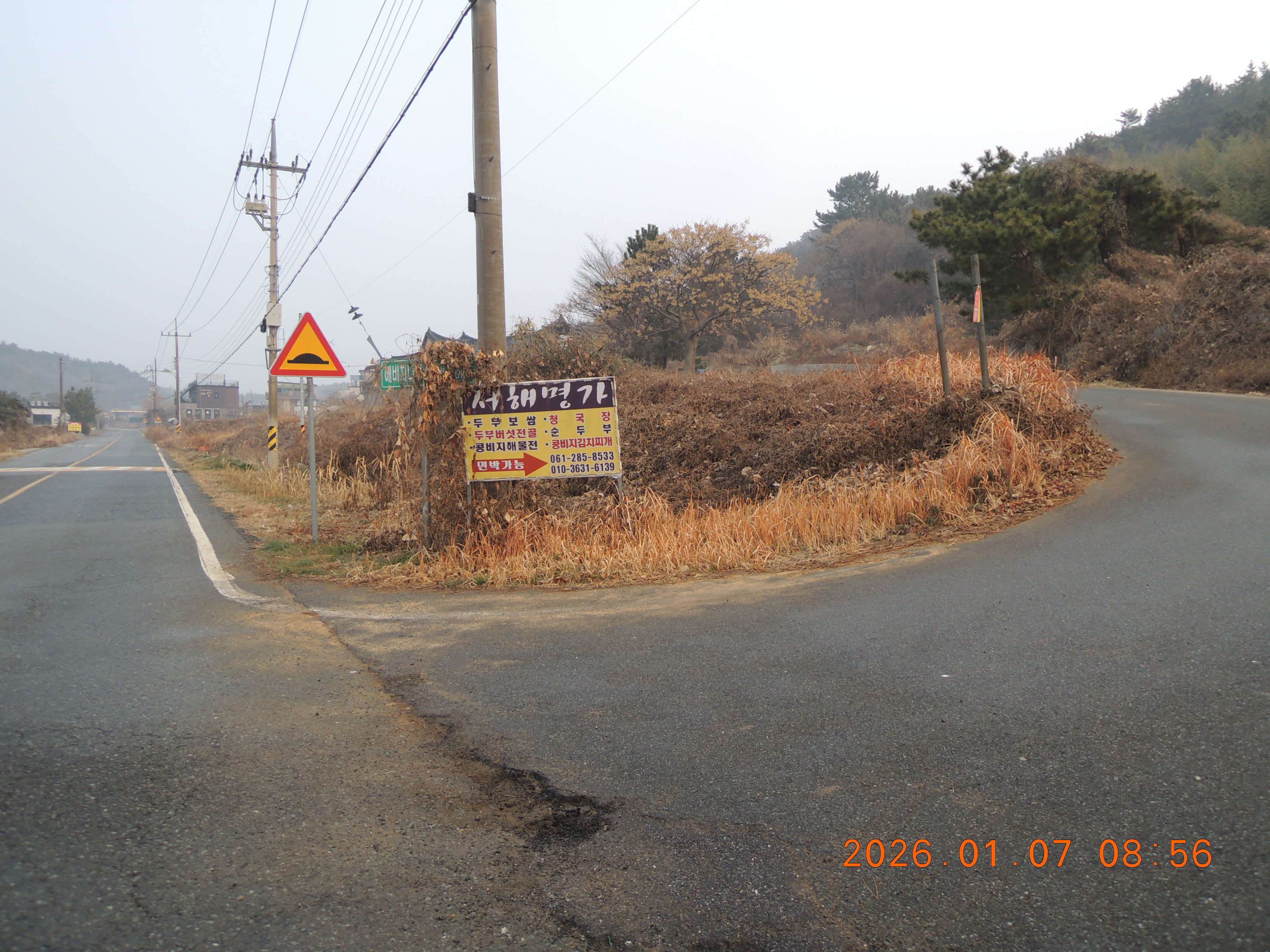 -11:55 815번도로 육거리교차로 이정표 ←톱머리해수욕장 8.2Km 암거통과 좌·우회