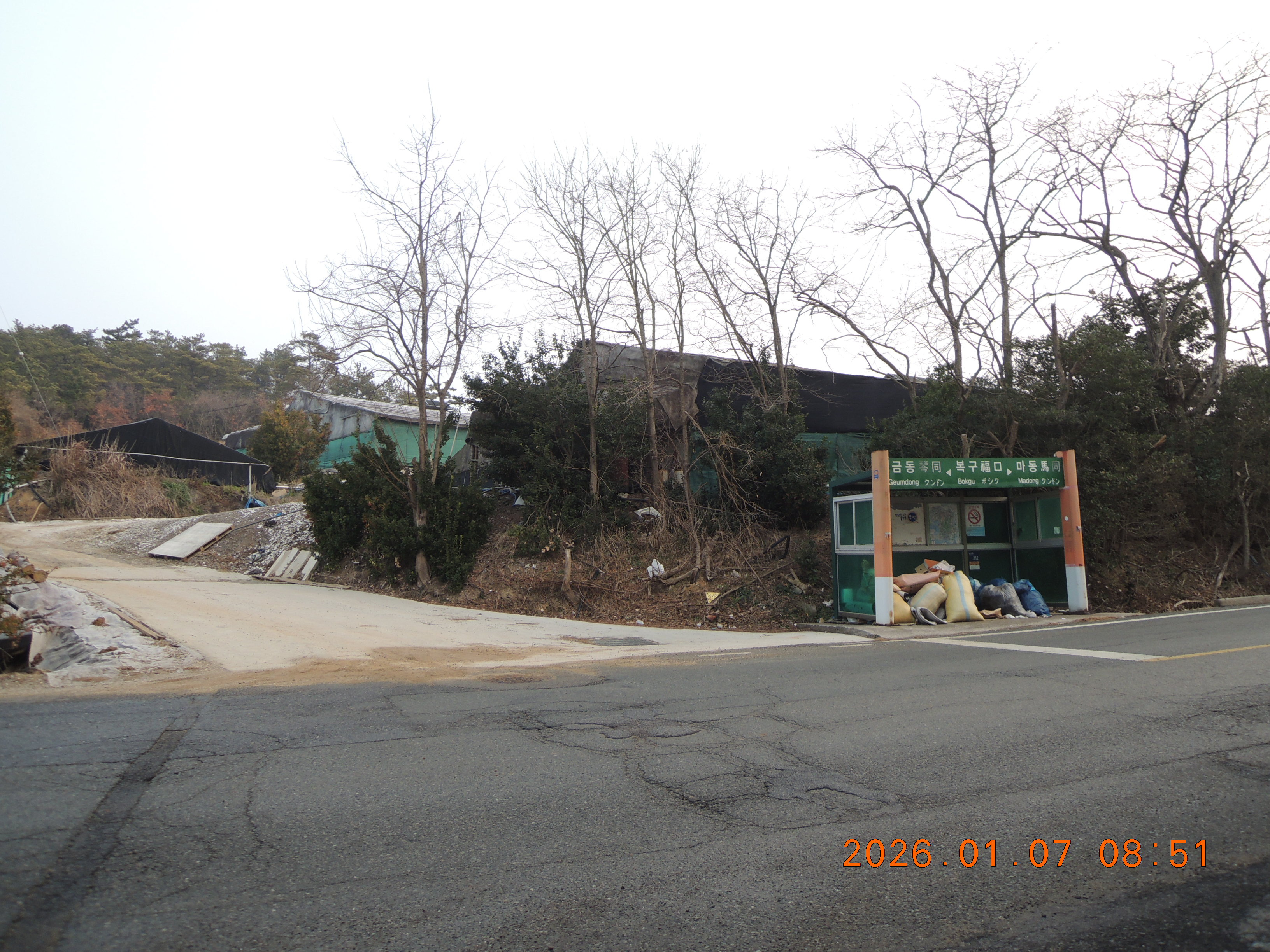 -09:35 축사,제이러브팜 지나, 복용경로당 좌회, 복룡마을 표석 지나고