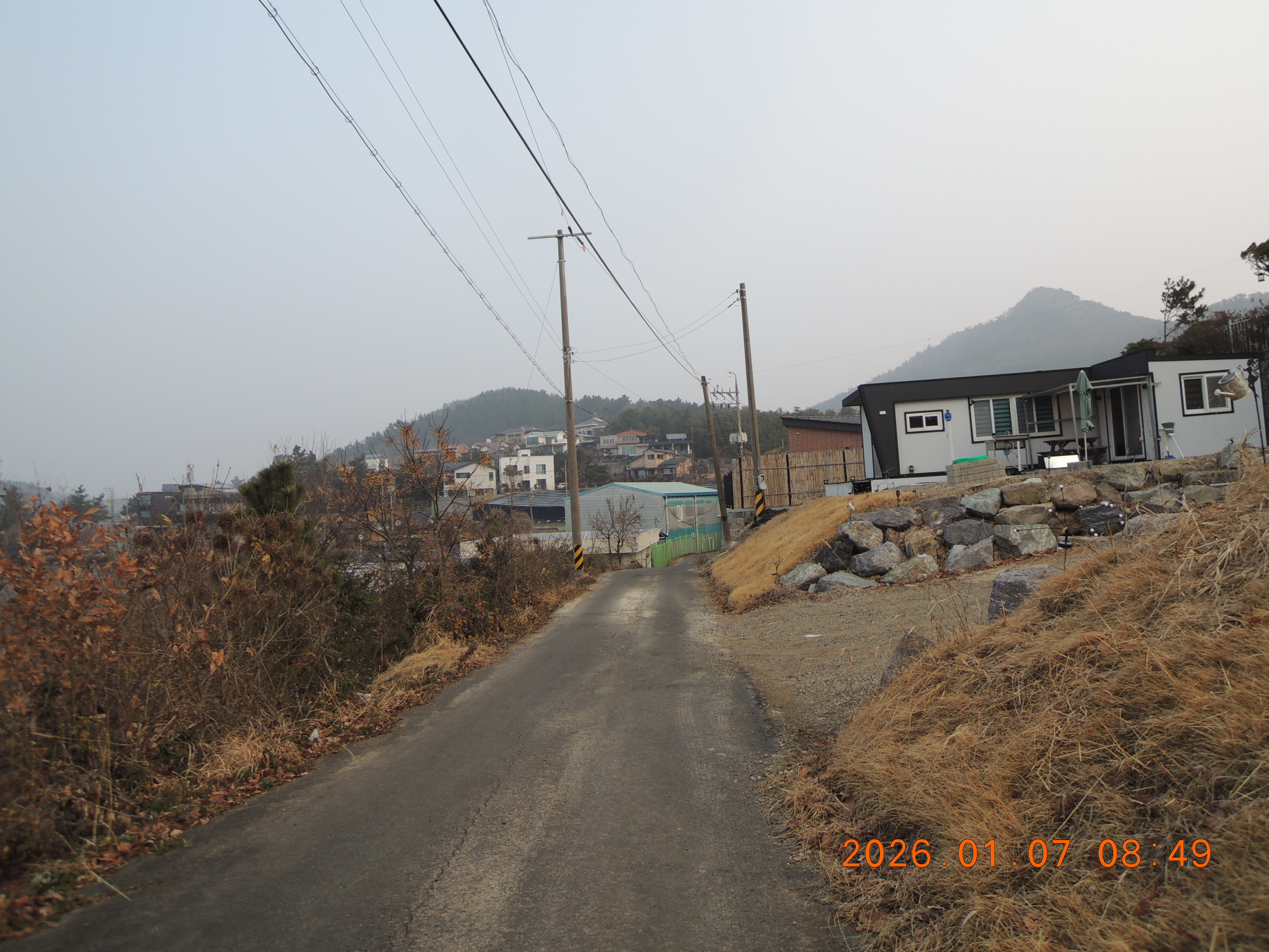 -12:16 청운로 건너 은성농장을 끼고 좌측으로 올라 청운로합류 우회 복룡1리회관, 비내림