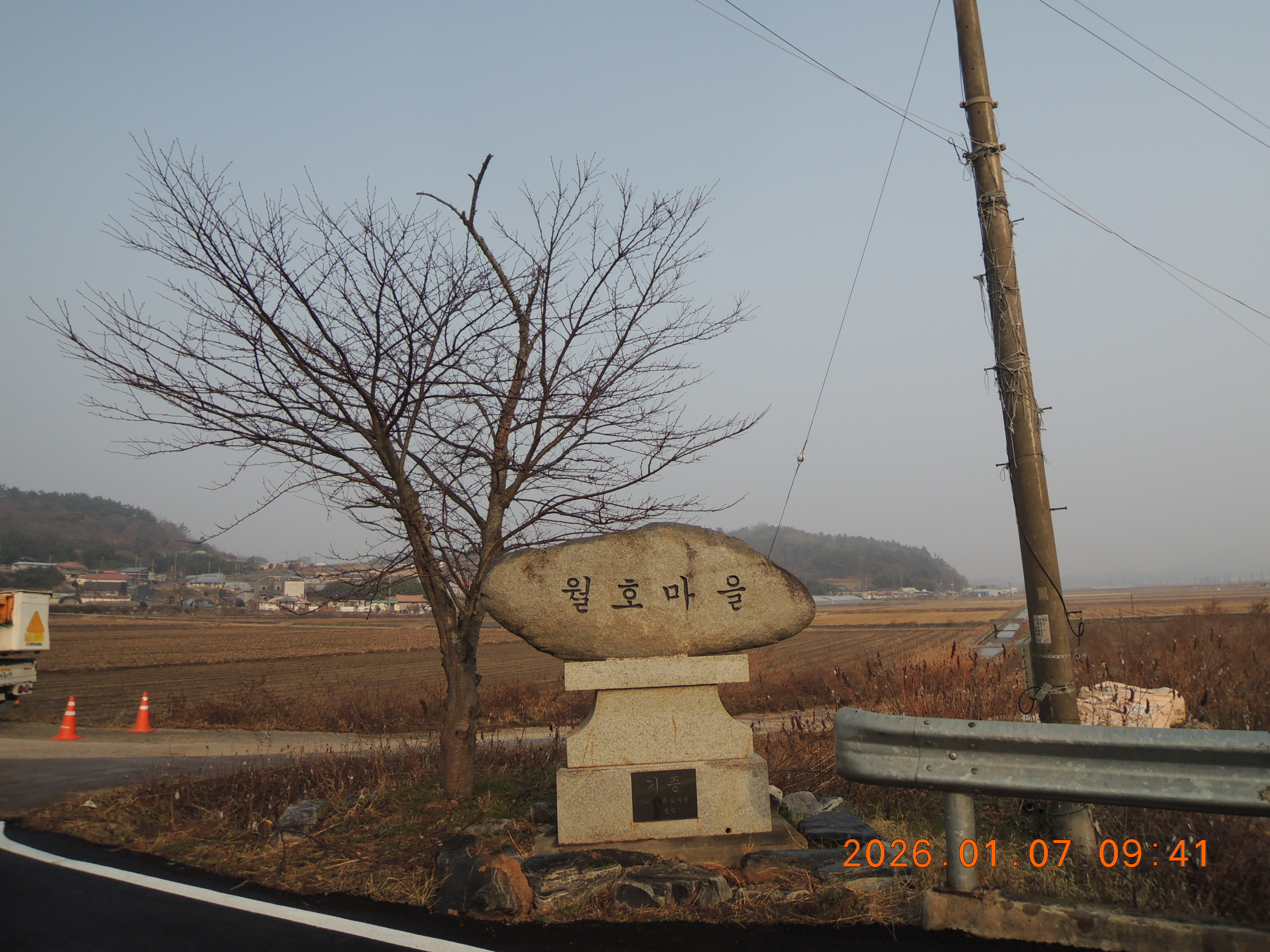-09:06 마동마을회관, 이정표 →월호제 1.9Km방향.