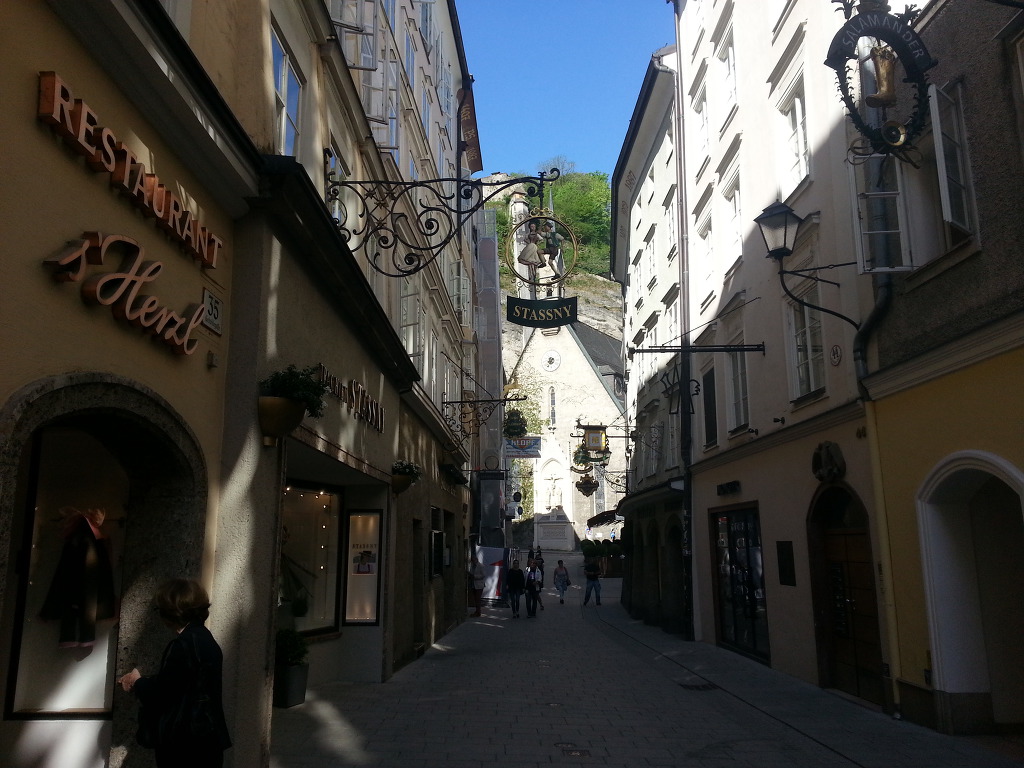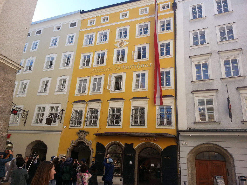 게트라이데거리 입구에는 가장 오래된 2층 까페가 있고 그 옆으로 아주 좁은 3층짜리 집이 보인다. 부잣집 딸에게 구혼한 총각이 샀던 집이라고 한다. 모차르트 동상이 세워져있는 모차르트광장에는 모차르트가 세례를 받은 대성당이 있는데 성당안 왼쪽에 청동으로 된 큰 세례반이 있고 뒤편 2층에는 모차르트가 직접 연주한 아주 큰 파이프오르간이 있는데 성당 앞으로 갈 수 없도록 줄을 쳐 놓아서 제대로 보지는 못했다.