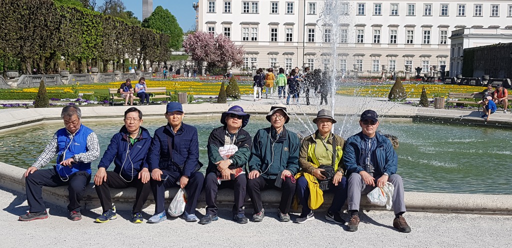 보행자도로 골목을 지나 개울 쪽으로 나오니 영화에서 아이들이 마리아와 함께 소풍을 나와 노래를 부르던 잔디밭이 있고 다리난간에는 사랑을 맹세하는 자물쇠들이 빈틈없이 매달려 잇다. 다리 건너편 왼쪽에는 지휘자 카라얀의 생가가 있는데 집 앞 정원 계단 앞에 카라얀이 지휘하는 모습의 동상이 세워져 있다. 바로 이어지는 미라벨궁 정원에는 예쁜 꽃들이 심어져 있는데 정원에서 바라보는 언덕 위 호엔짤츠부르그 성의 모습이 참 예쁘다. 미라벨궁 하얀 건물 왼편으로 돌아가니 조각 분수 뒤로 영화에서 아이들이 오르내리면서 도레미송 노래를 부르던 계단이 있다. 다시 버스를 타고 슬로베니아로 이동했다. 눈 덮인 산봉우리를 멀리 보면서 산길을 달린다. 주변 풍광이 멋지다.