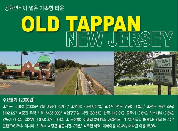 뉴저지 북동부 가장자리에 자리한 버겐 카운티의 올드 태판은, 방대한 공원면적, 활발한 부동산 거래, 좋은 학군 등으로 높은 인기를 얻고 있는 타운이다. 한인들 사이에서도 인기가 높아 타운내 한인인구 비율도 10% 가까이 된다. 뉴욕에서 약 22마일 거리이며, 주요 도로와 교통망이 발달해 있어 맨해튼으로 출퇴근하는 주민들도 꽤 된다.