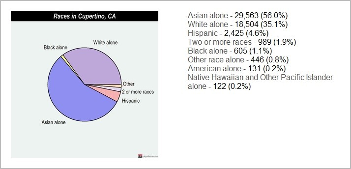 애플 컴퓨터 본사가 있는 곳으로 유명하지만 학군 때문에 스탠포드 대학이 있는 팔로알토와 함께 동양인이 65%를 차지하고 있다. 쿠퍼티노 교육구의 고등학교는 미국 전체 고등학교 평균성적의 상위 1%이내에 들고 고등학생들이 노벨상이라고 소문난 인텔 과학영재상 전국 최종결선 40명 중에 Cupertino 학생들이 항상 4~5명 포함 될 정도이다.