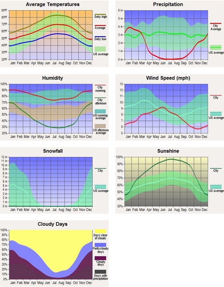 Redwood 숲은 쿠퍼티노 저지대를 내려다 보는 언덕을 감싸고 있어서 쿠퍼티노는 습한 겨울과 건조한 여름과 마일드하고 따뜻한 날씨가 반복된다