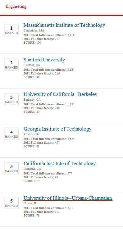 University of Illinois at Urbana-Champaign [UIUC] (일리노이 대학교 어바나-샴페인)의 최고 학과들