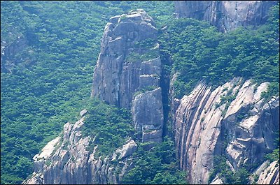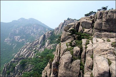 월출산의 기암괴석들은 성을 쌓아 놓은 듯 하다.