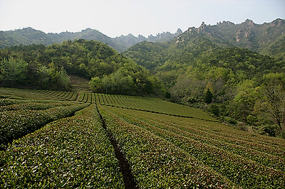 월출산 자락 아래로 펼쳐진 광활한 차밭의 풍경