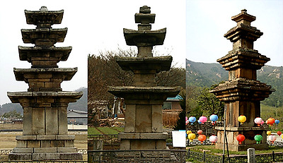 좌로부터 정림사지 5층석탑, 비인 5층석탑,월남사지 3층석탑