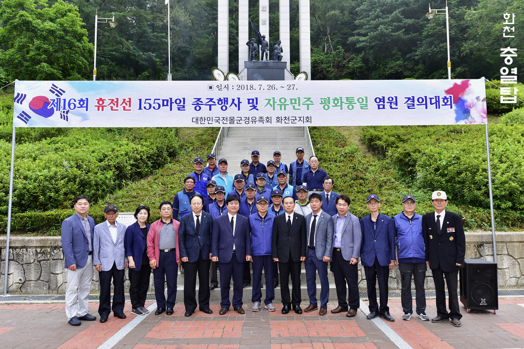 7월 27일 휴전협정 66주년을 맞이하여 대한민국 전몰군경유족회가 주관하고 국가보훈처가 후원하 는 제17차 자유,민주, 평화, 통일 결의대회와 "휴전선 155마일을 달린다" 행사의 성공을 6만회원의 이름으로 기원합니다. ///////////////////////////////////////////////////////////////////////////// 2018년 제 16회 행사자료모음