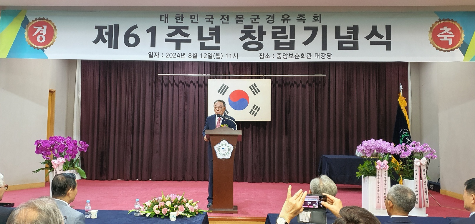 2024년 8월 12일(월) 11:00 대한민국전몰군경유족회 창립 제61주년 기념식에 사무총장의 경과 보고 와