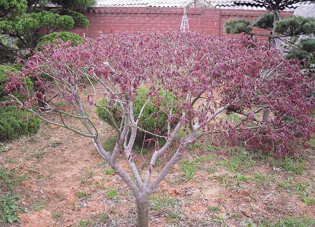 올해는 단풍나무에서 꽃이 발생하는 모습을 보입니다. 이나무도 초기에 기형적인 모양을 만들려고 했으나 부모님이 저 없을때 윗부분을 절단해서 ㅡㅡ 저 상태로 머물게 되었습니다.