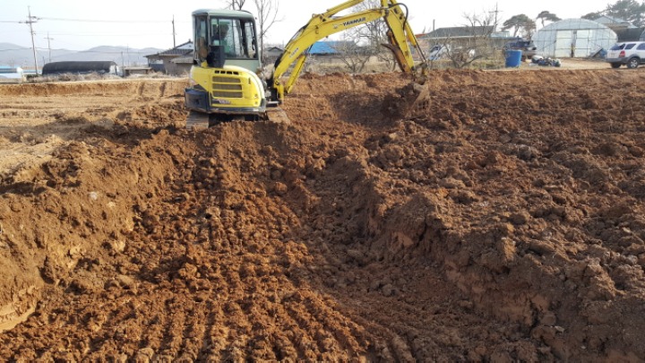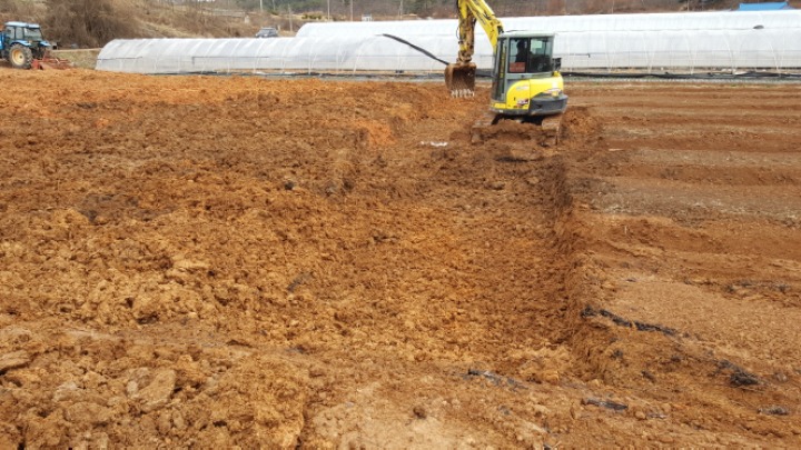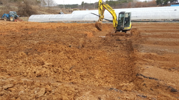 이렇게 아무것도 없을 때 마음껏 후련하게 뒤집어야 합니다. 이렇게 뒤집어 놓으면 제아무리 비가 와도 금방 보슬보슬 흙이 저당해지고... 그 밑으로 빗물이 유동하여 전체과원을 고르게 합니다.