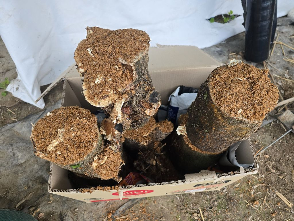 그래서 하우스 안에서 뽕나무 잘라 놓았던 나무에 느타리 종균접종 작업을 조금 해 보았습니다.