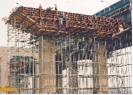 (6) 층고가 매우 높거나 슬래브의 두께가 두꺼운 중량구조물인 경우(지하철, 특수구조물 등)에는 슬래브 하중을 고려하여 하중에 견딜 수 있는 부재단면을 갖춘 시스템 동바리를 활용하도록 한다.