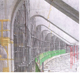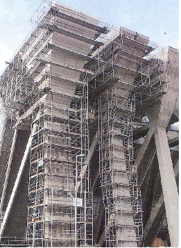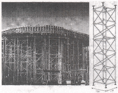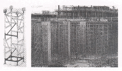(4) 일정 높이까지의 거푸집 동바리 구조는 파이프받침에 삽입식 보조지주를 끼워 단일부재의 거푸집 동바리를 설치하도록 하여, 이질 부재의 혼합사용에 따른 구조적 취약성을 피하도록 하여야 한다.