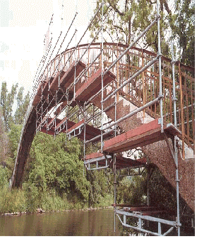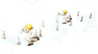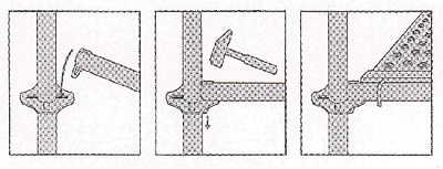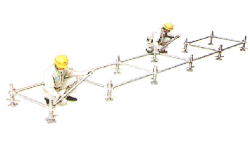 - 파이프받침은 장선과 멍에가 교차되는 지점에 설치하여야 하며 장선재는 반드시 2개소 이상 고정하여야 한다.