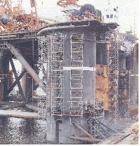 (5) 층고가 높은 구조물의 거푸집 동바리에 강관틀비계 부재를 사용하는 경우에는 다음사항을 준수하여야 한다.