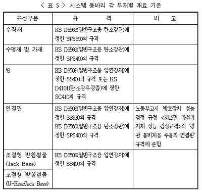 - 틀비계 상단에 파이프받침(Hmax=4.0m)으로 동바리를 추가로 설치할 경우에는 틀비계 부재 상단에 두께 10cm 이상의 널재로 장선, 멍에를 직각방향으로 설치하여야 한다.